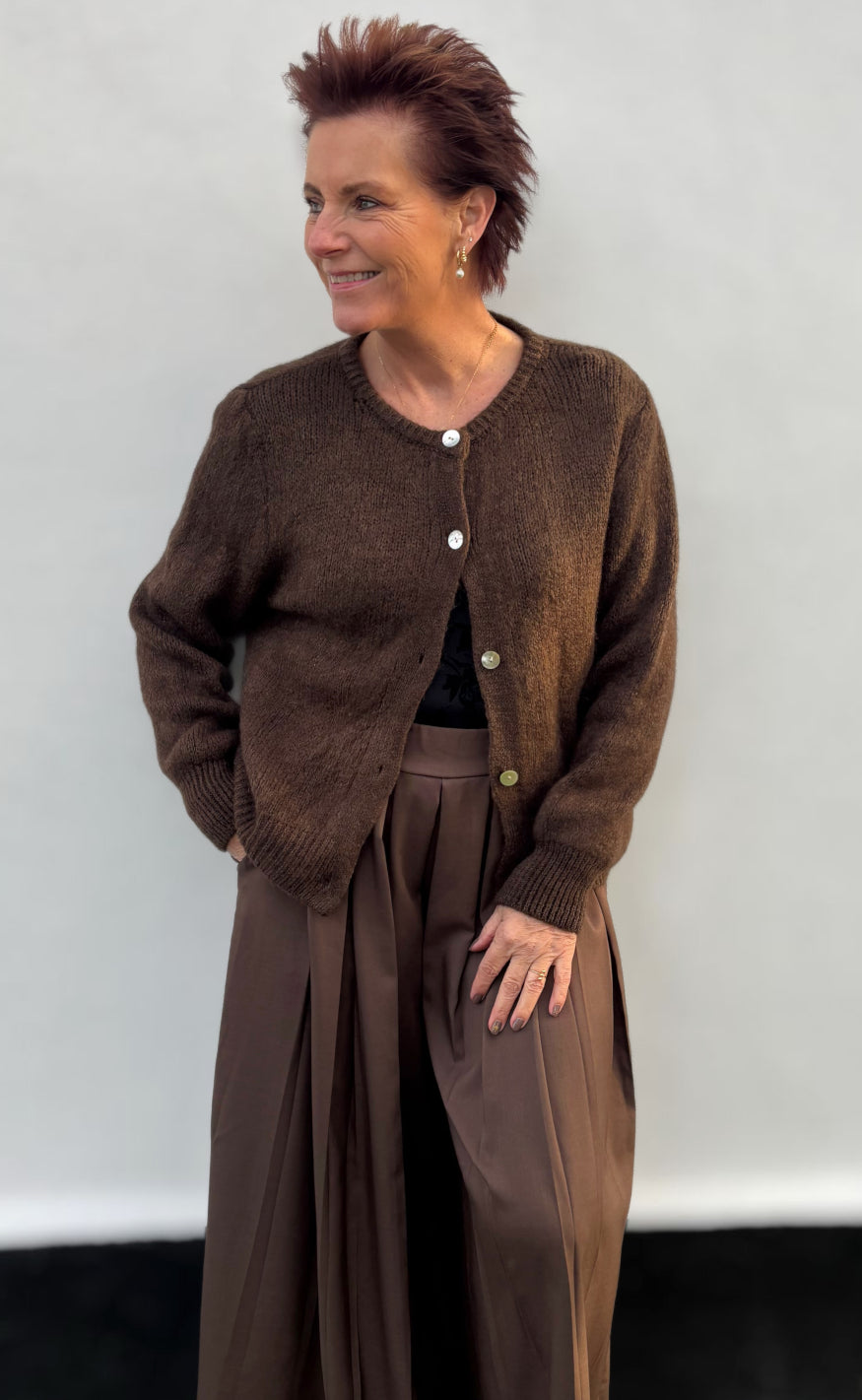 Basic cardigan fra Marta Du Chateau i brun.