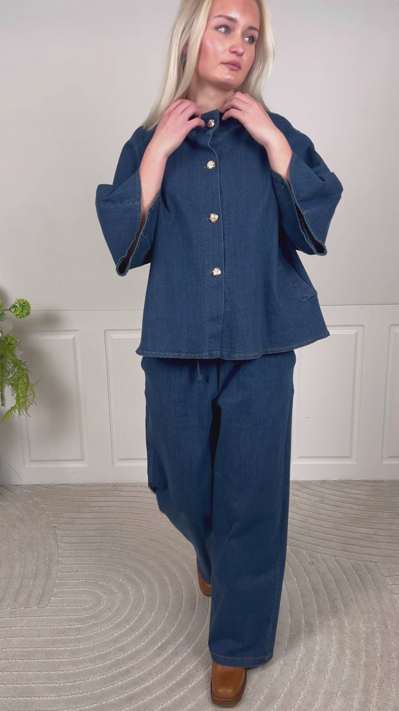 Kort jakke fra Marta Du Chateau i denimlook med en løs og afslappet pasform.