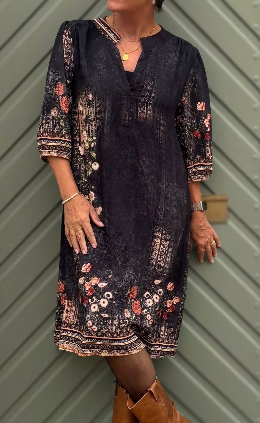 Smuk kjole fra Marta Du Chateau i sort, med et fint print.