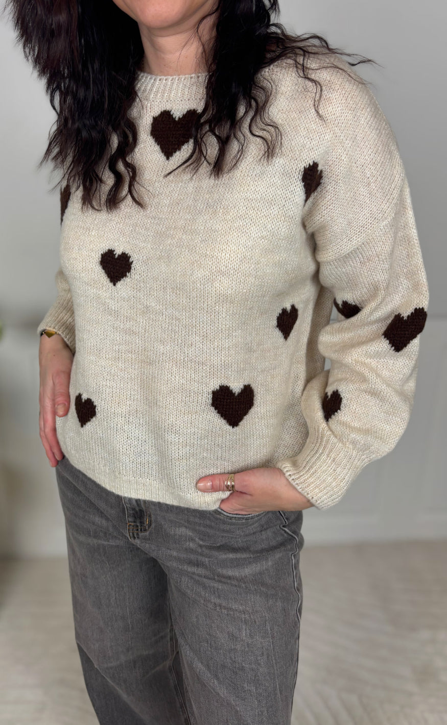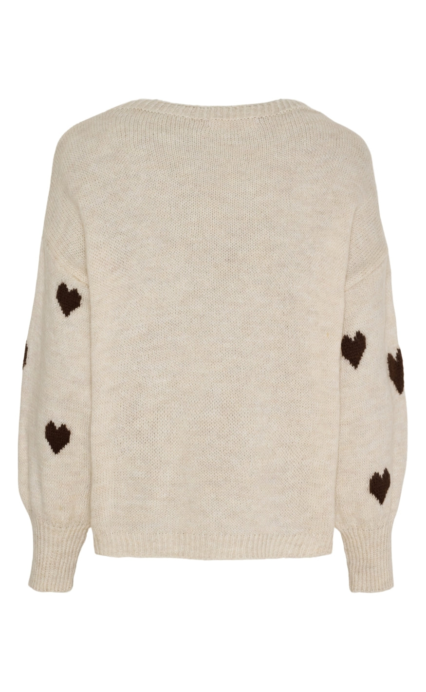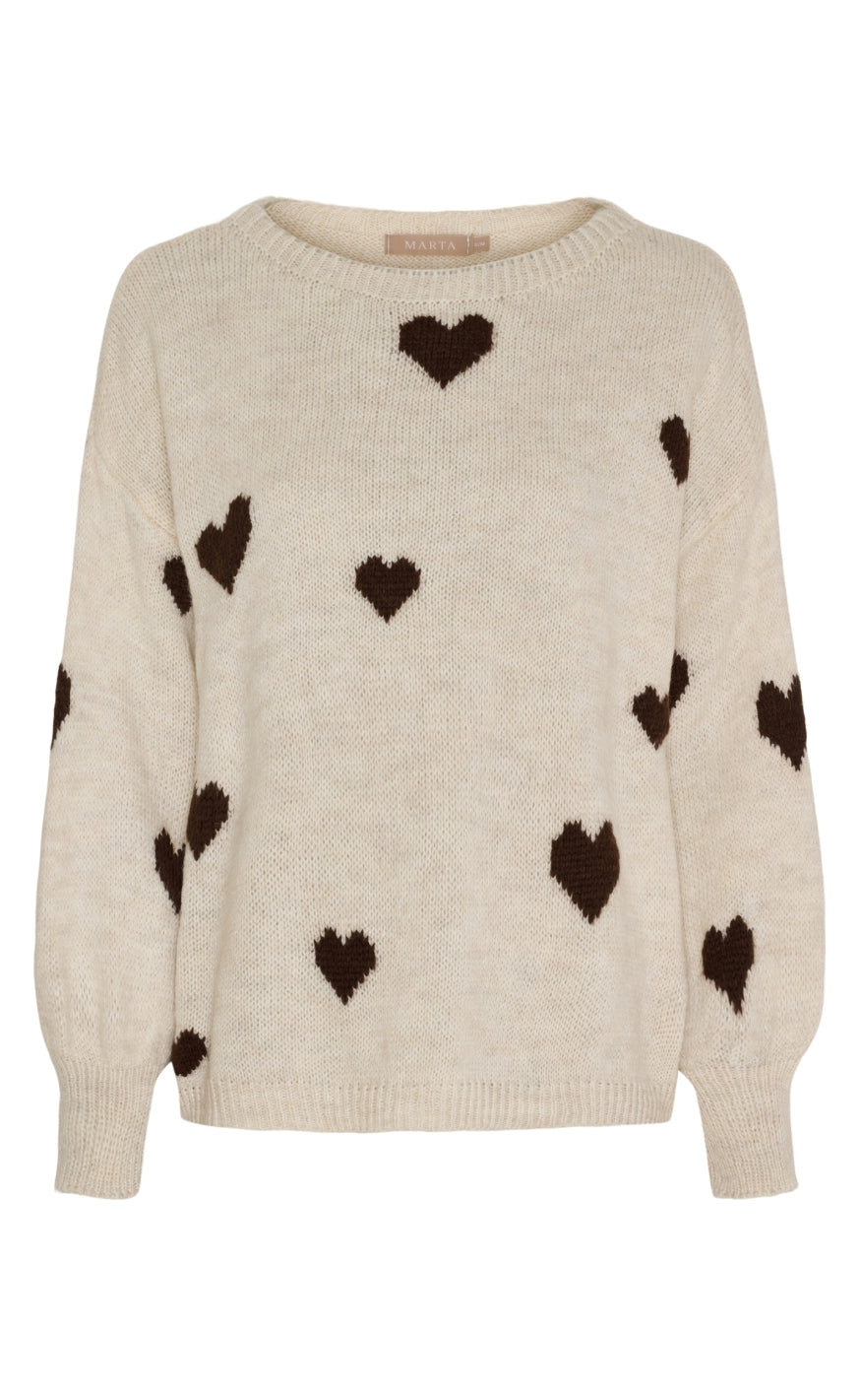 Beige strik fra Marta Du Chateau med dekorative hjerteprint i en kontrastfarve.
