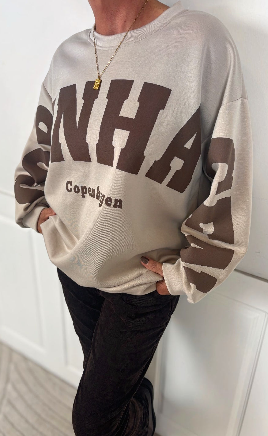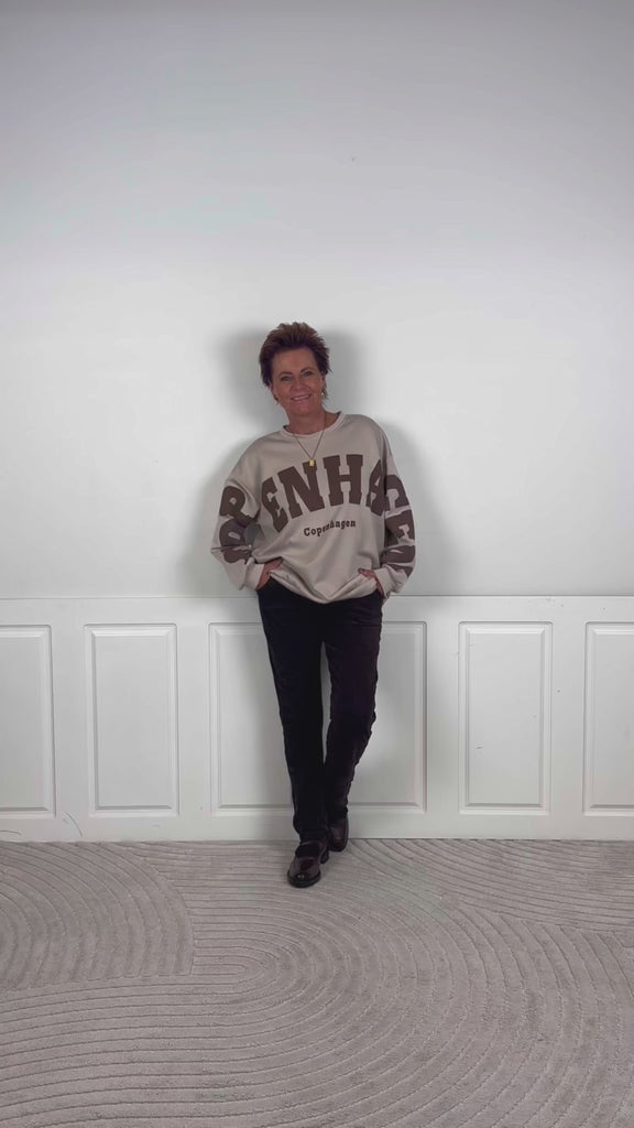 Lækker sweatshirt fra Marta Du Chateau i beige med brun skrift.