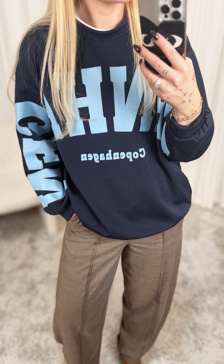 Lækker sweatshirt fra Marta Du Chateau i navy med blå skrift.
