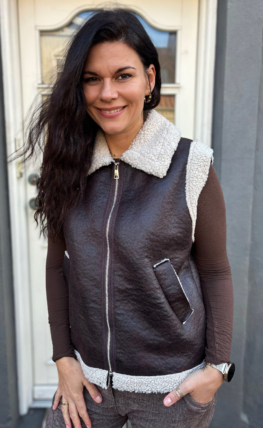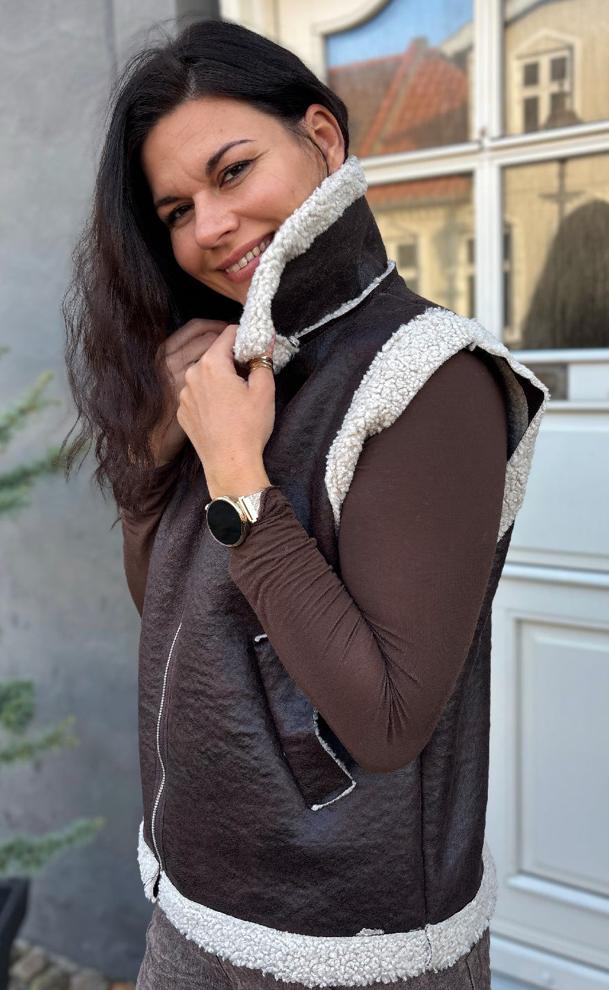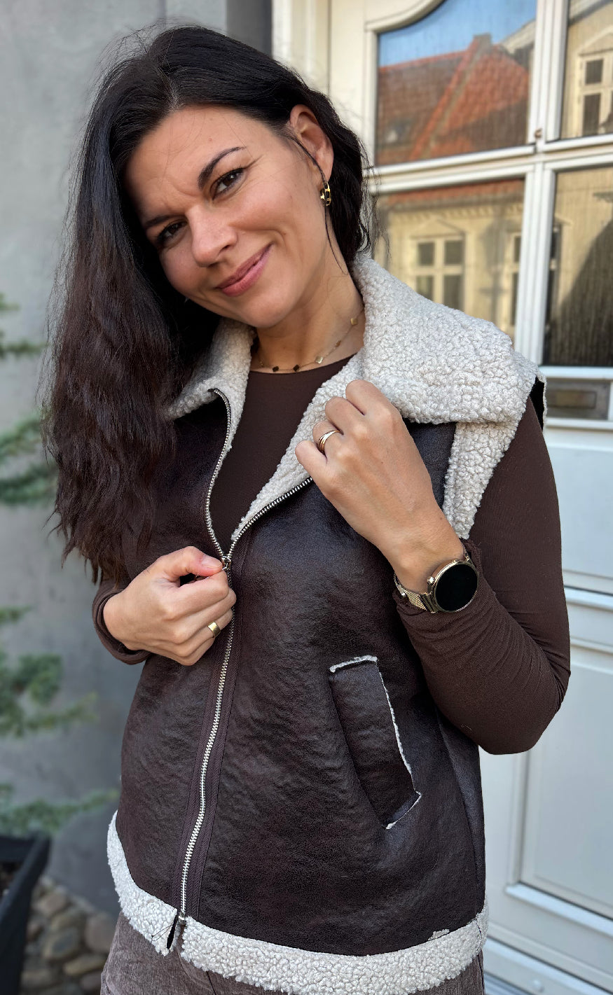 Hold dig varm og med denne smarte vest fra Marta Du Chateau. Vesten har et blødt og vamset for i teddy-look, lommer og lynlås. Perfekt til efterår og v