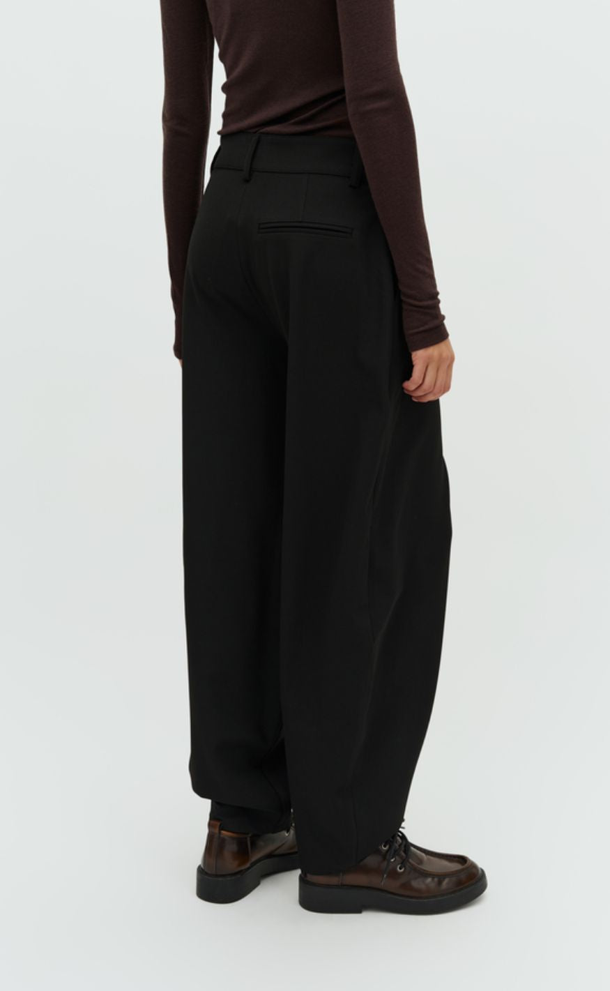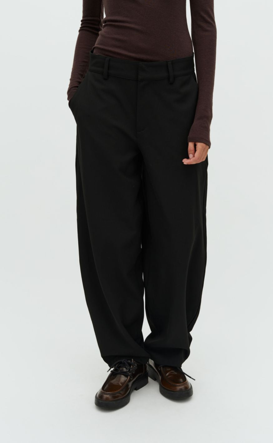 Klassiske sorte bukser med lige, let vidde i benene.
