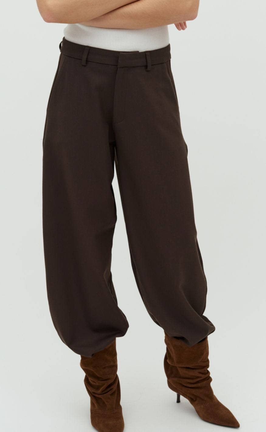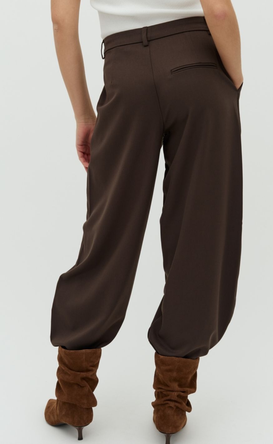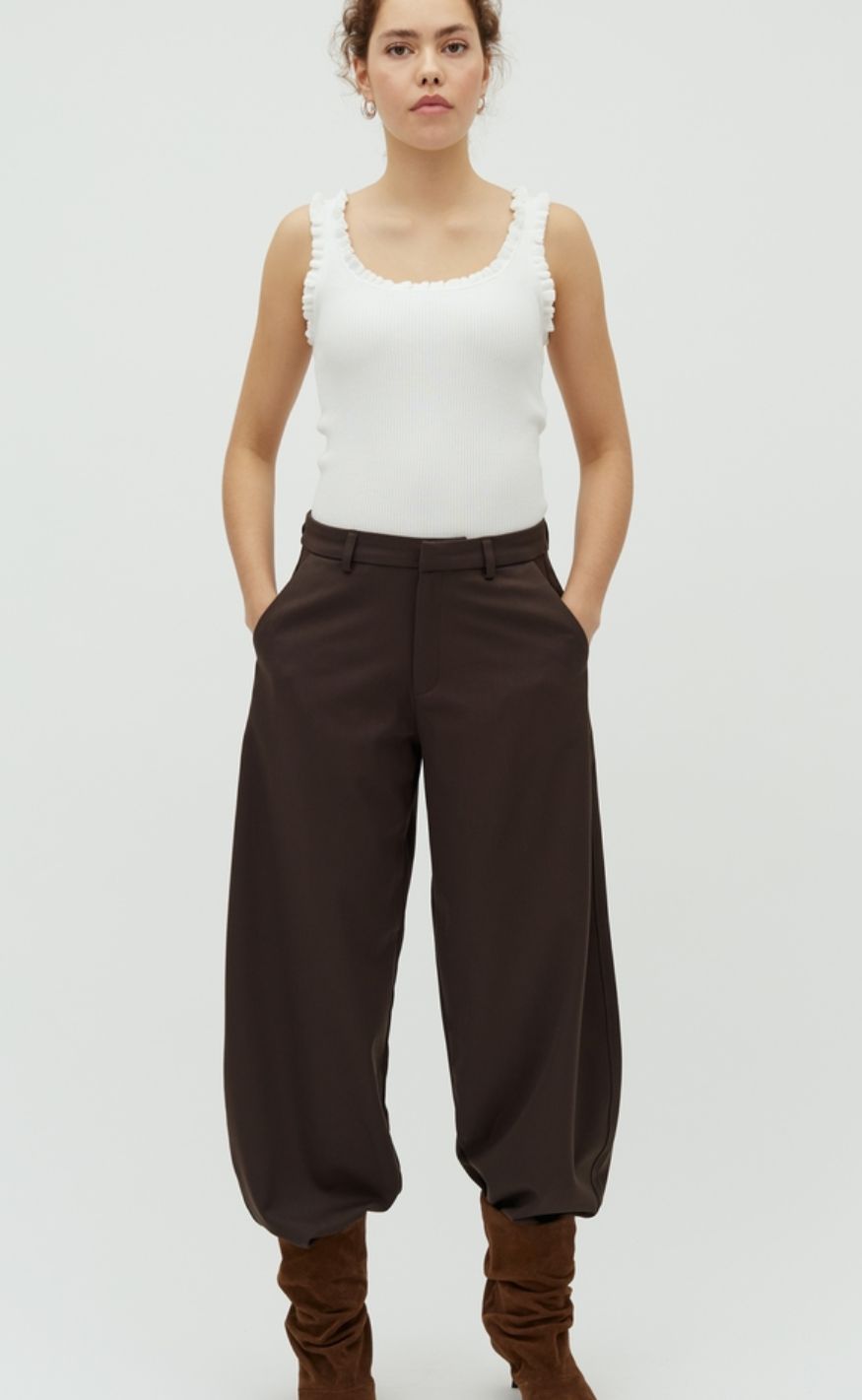 Klassiske brune bukser med lige, let vidde i benene.
