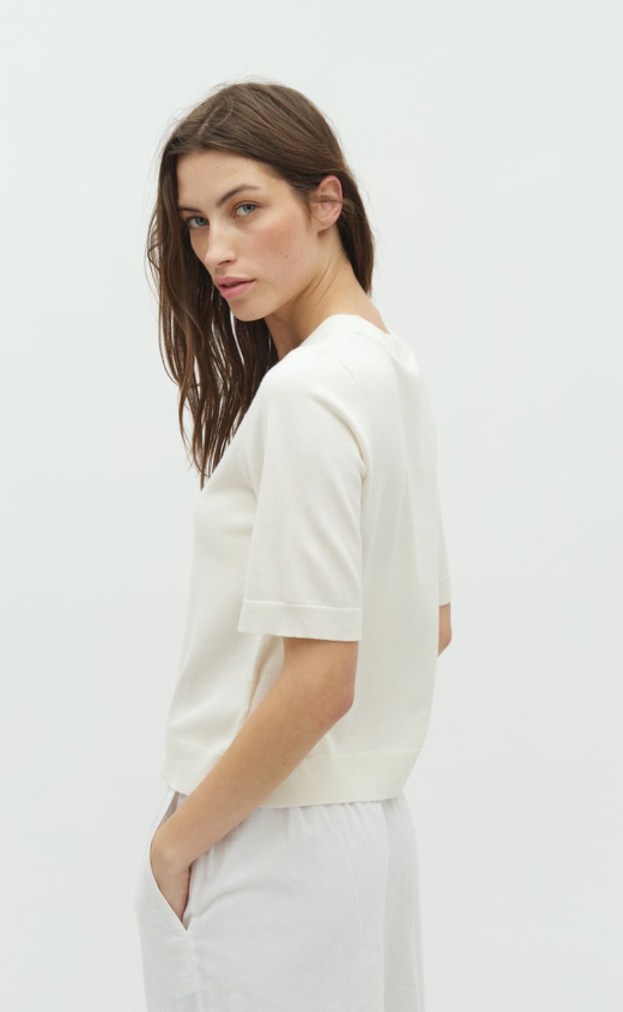Den lette kvalitet og enkle silhuet giver et stilrent udtryk, der gør den perfekt til både afslappede og mere sofistikerede hverdagslooks.