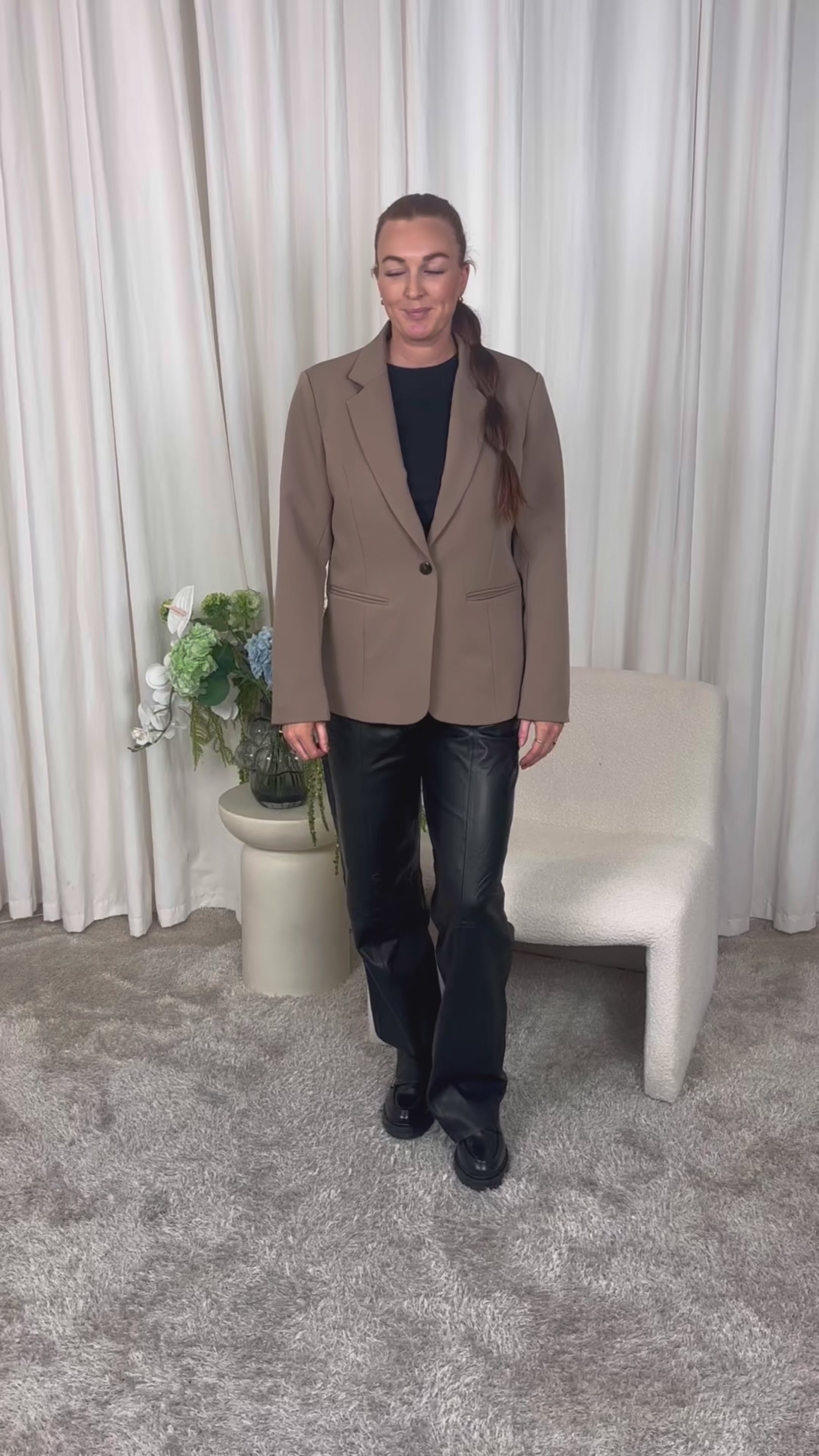 Blazeren lukkes fortil med én enkelt knap og har revers.