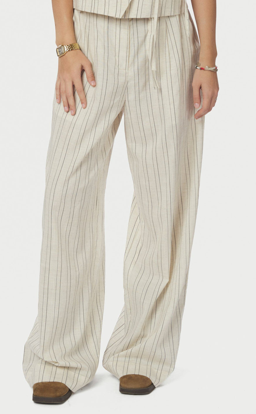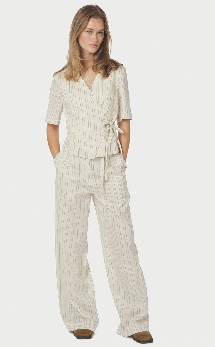 Let og stilfuld buks fra Neo Noir i en lys beige nuance med fine, mørke striber.