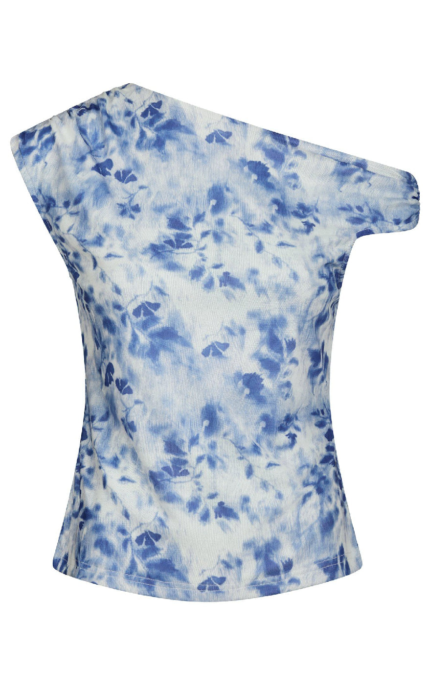 One-shoulder top fra Neo Noir i et blåt blomsterprint.