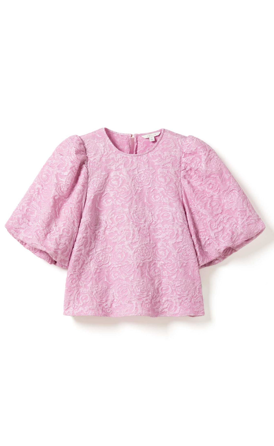 Smuk mønstret bluse fra Noella i et pink jacquard-vævet stof med elegant struktur.
