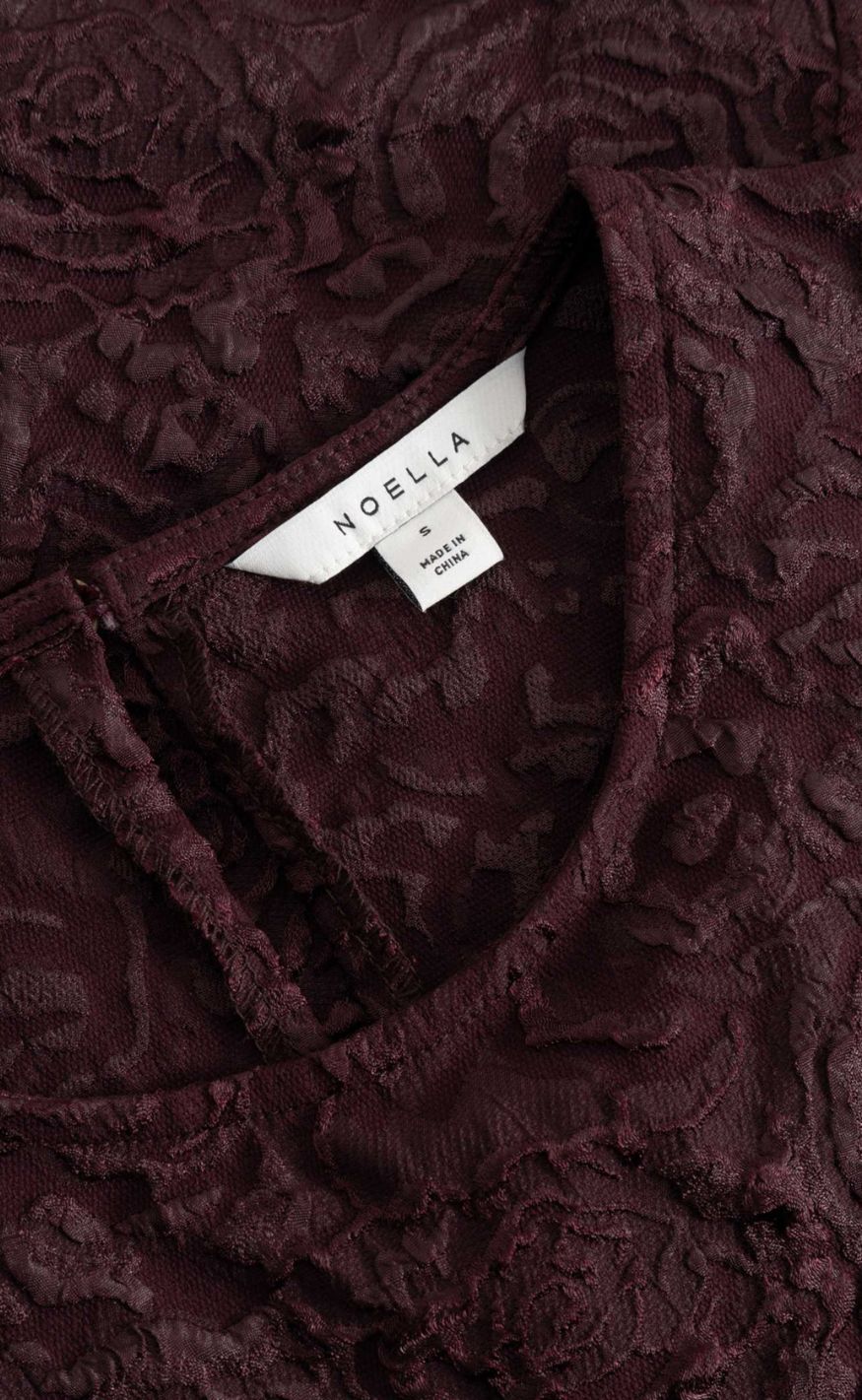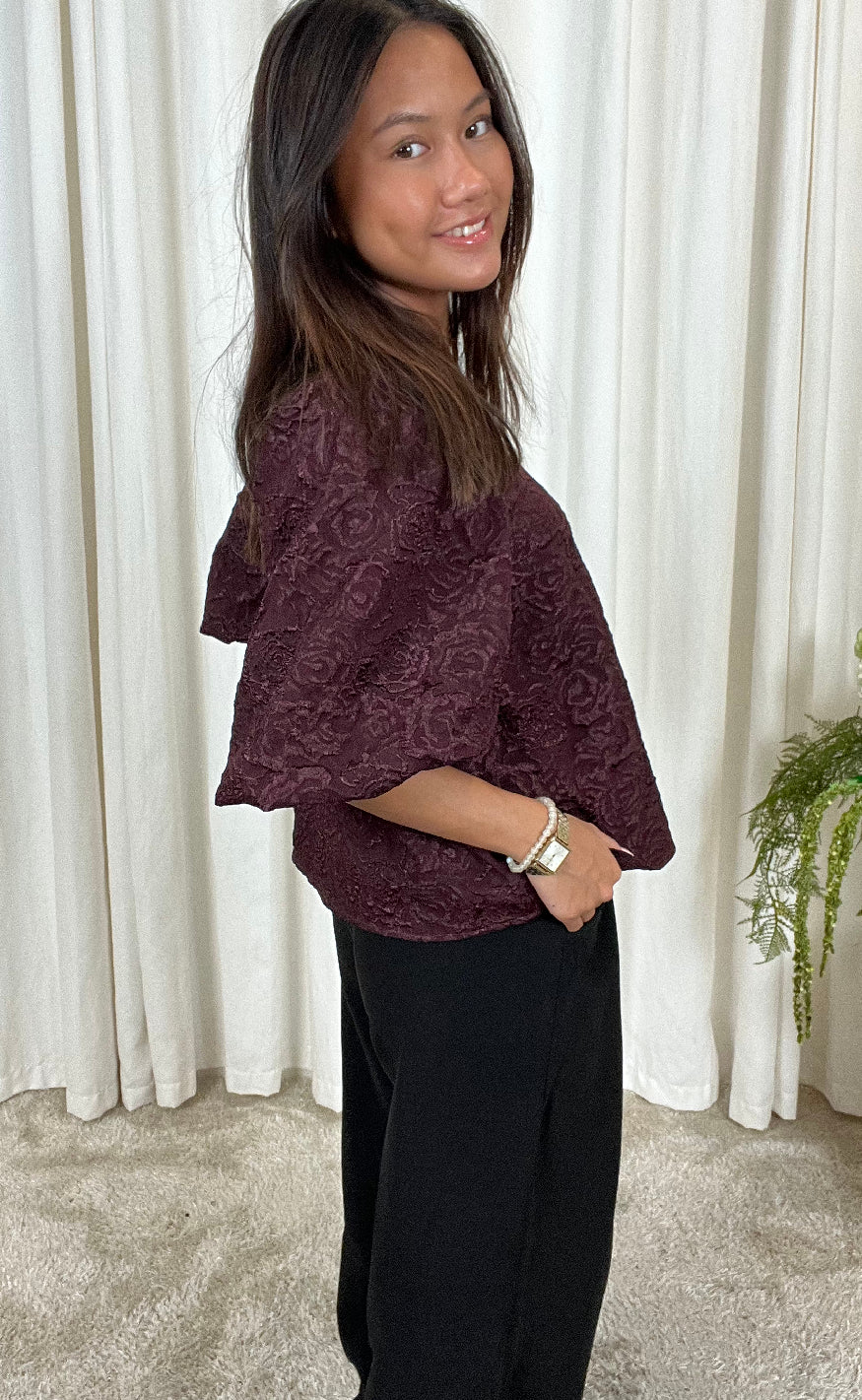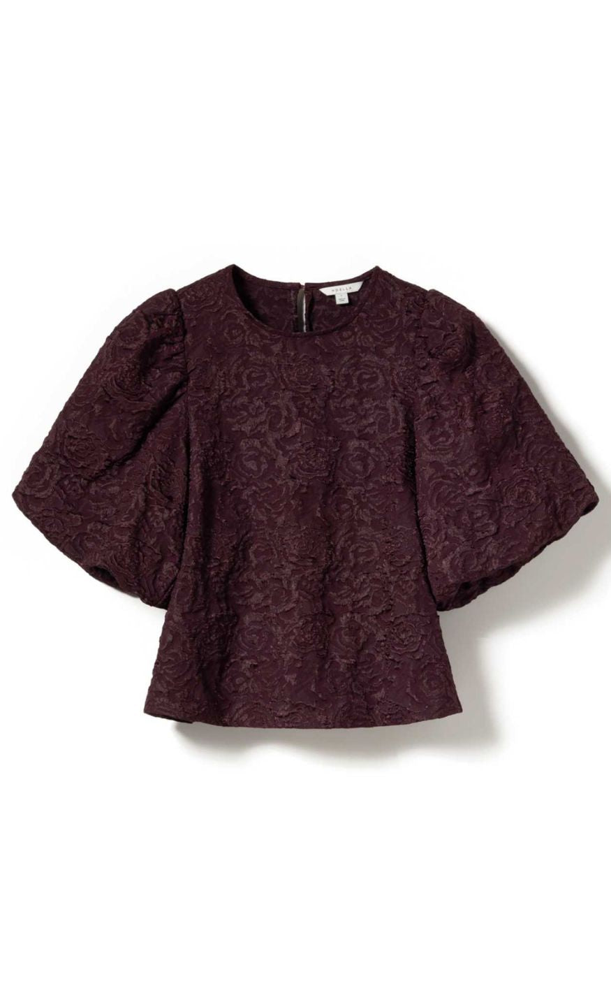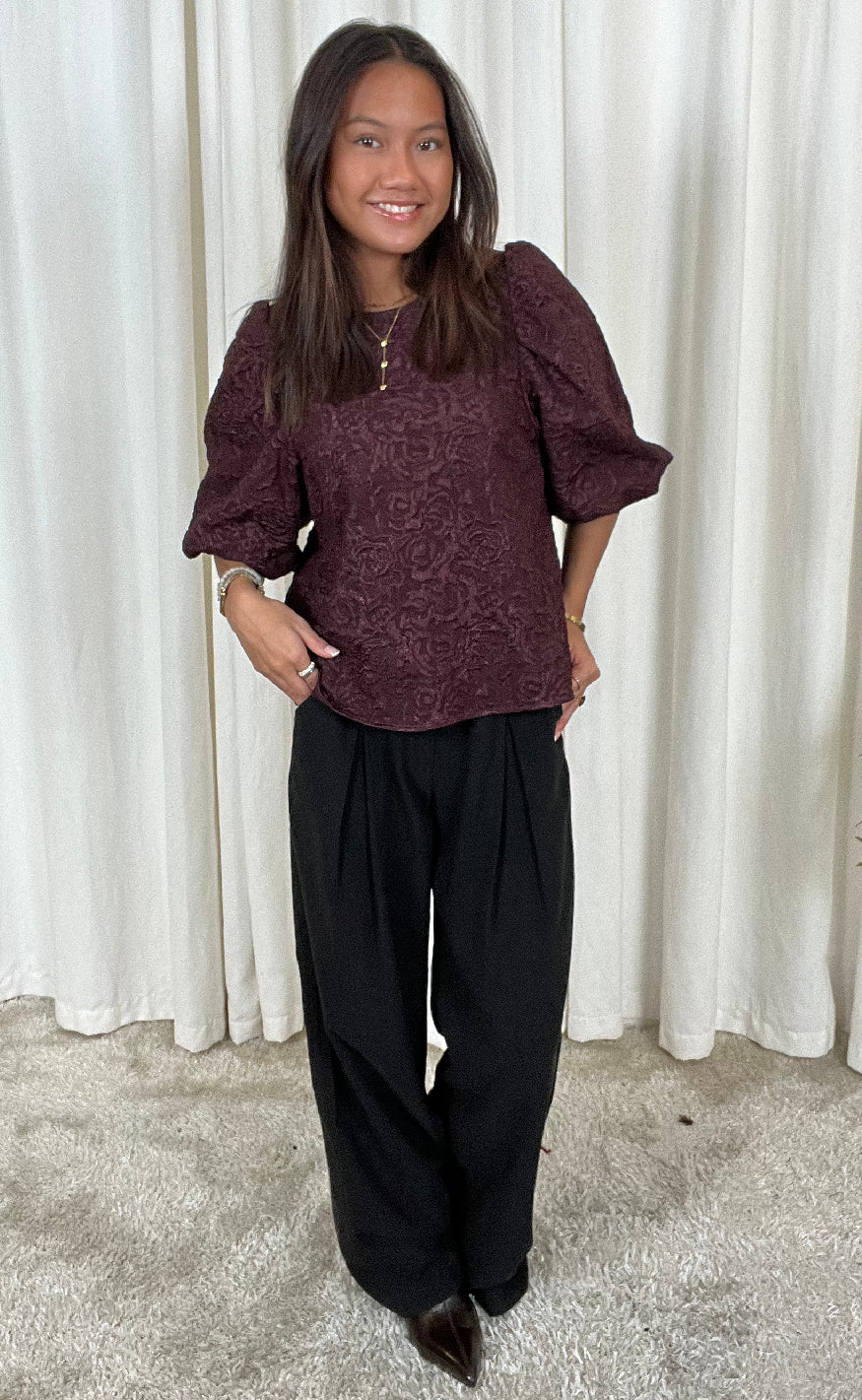 Smuk bluse i jacquardvævning med fine rosemotiver i skøn farve