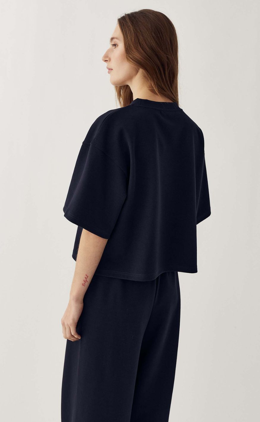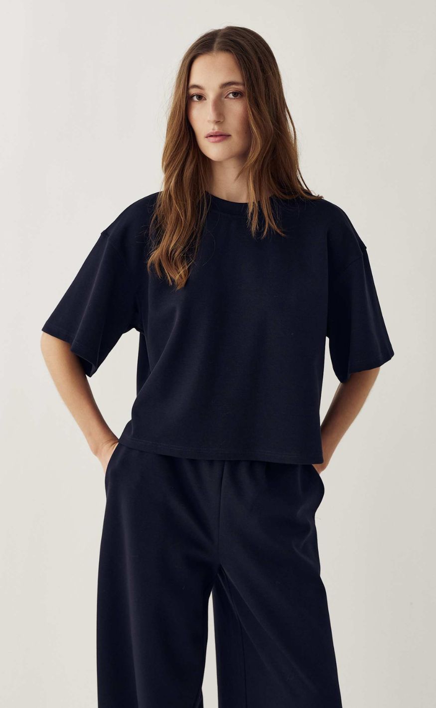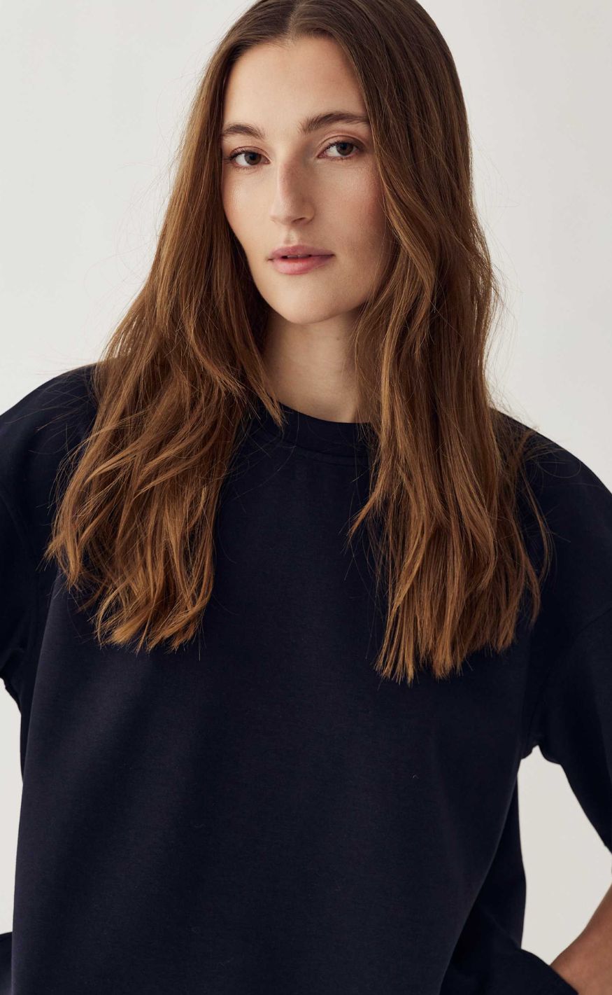 Enkel og moderne bluse i en blød kvalitet med et afslappet snit. Blusen har rund halsudskæring og korte, vide ærmer, som giver et cool og minimalistisk udtryk.