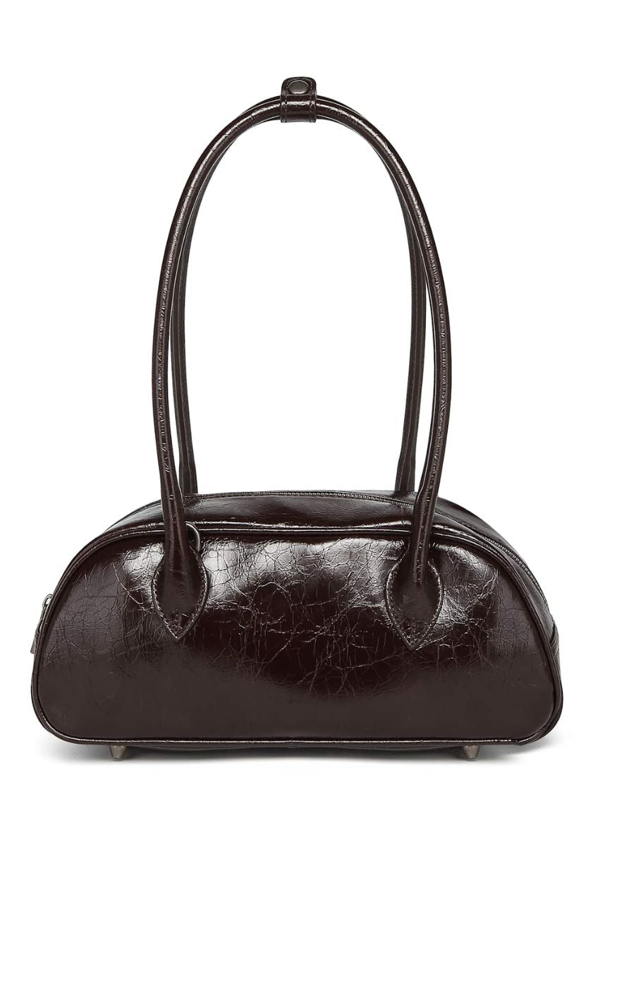 Elegant taske fra Noella i en mørk brun nuance med et klassisk og tidløst udtryk. Tasken har et blankt finish, faste hanke og en struktureret form, der giver et eksklusivt look.