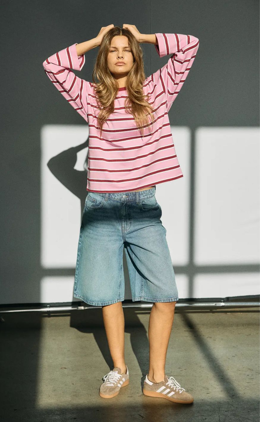 Klassiske denim shorts i blå vask med høj talje og lige ben.