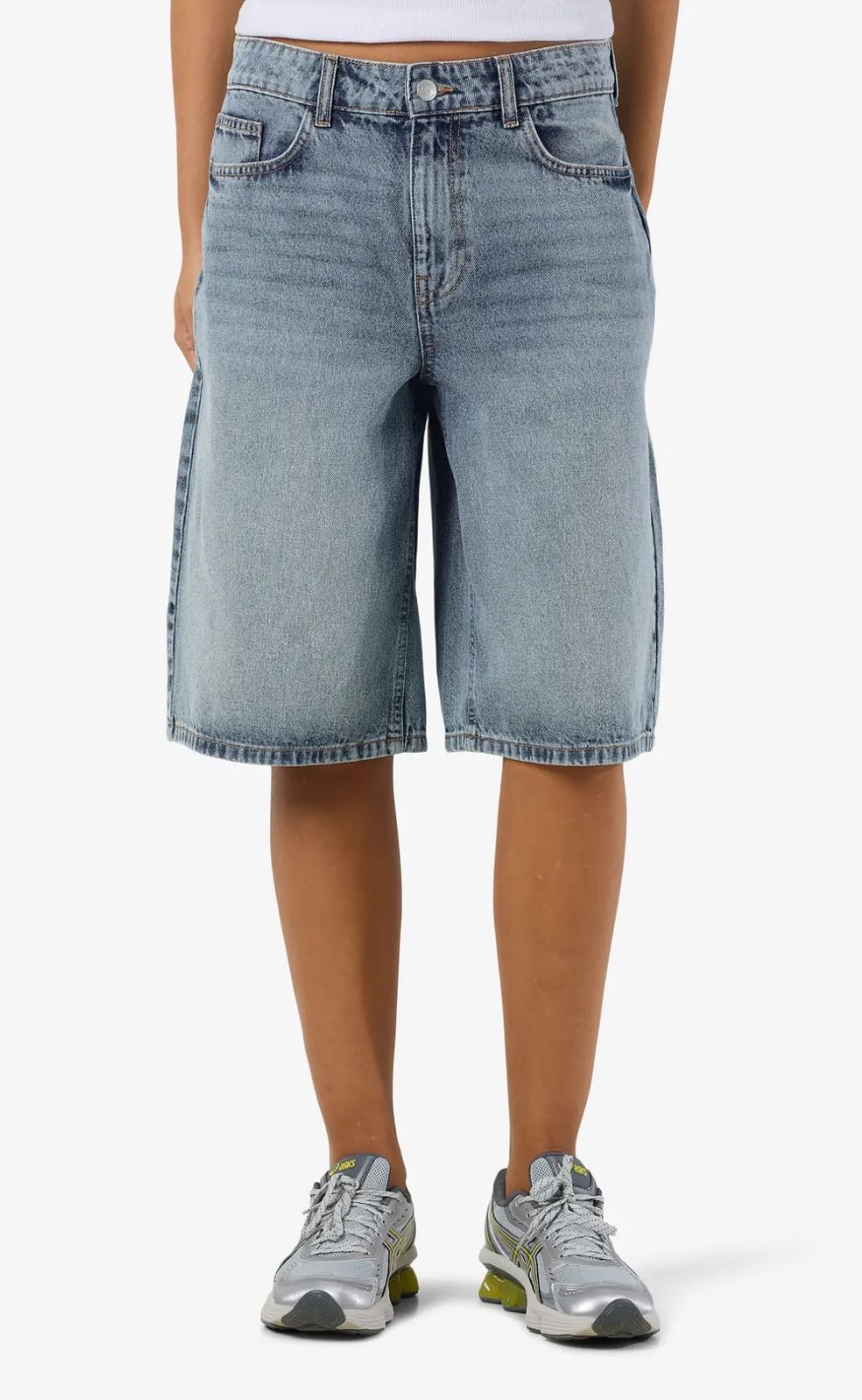Modellen har en behagelig pasform og en fast denimkvalitet, der holder formen. Shortsene er designet med lynlås- og knaplukning, bæltestropper samt for- og baglommer.
