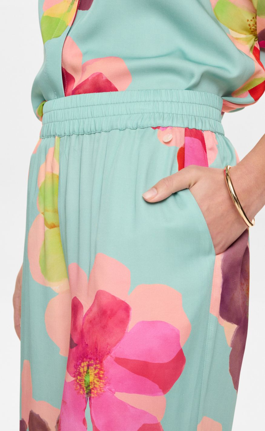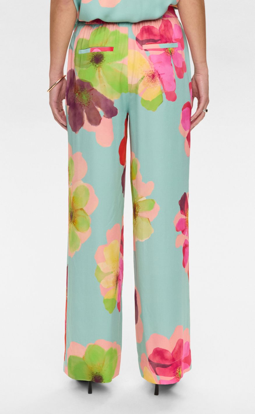 Den lette kvalitet og det iøjnefaldende print gør bukserne perfekte til både hverdag og fest – style dem med den matchende top eller en enkel skjorte for et balanceret look.