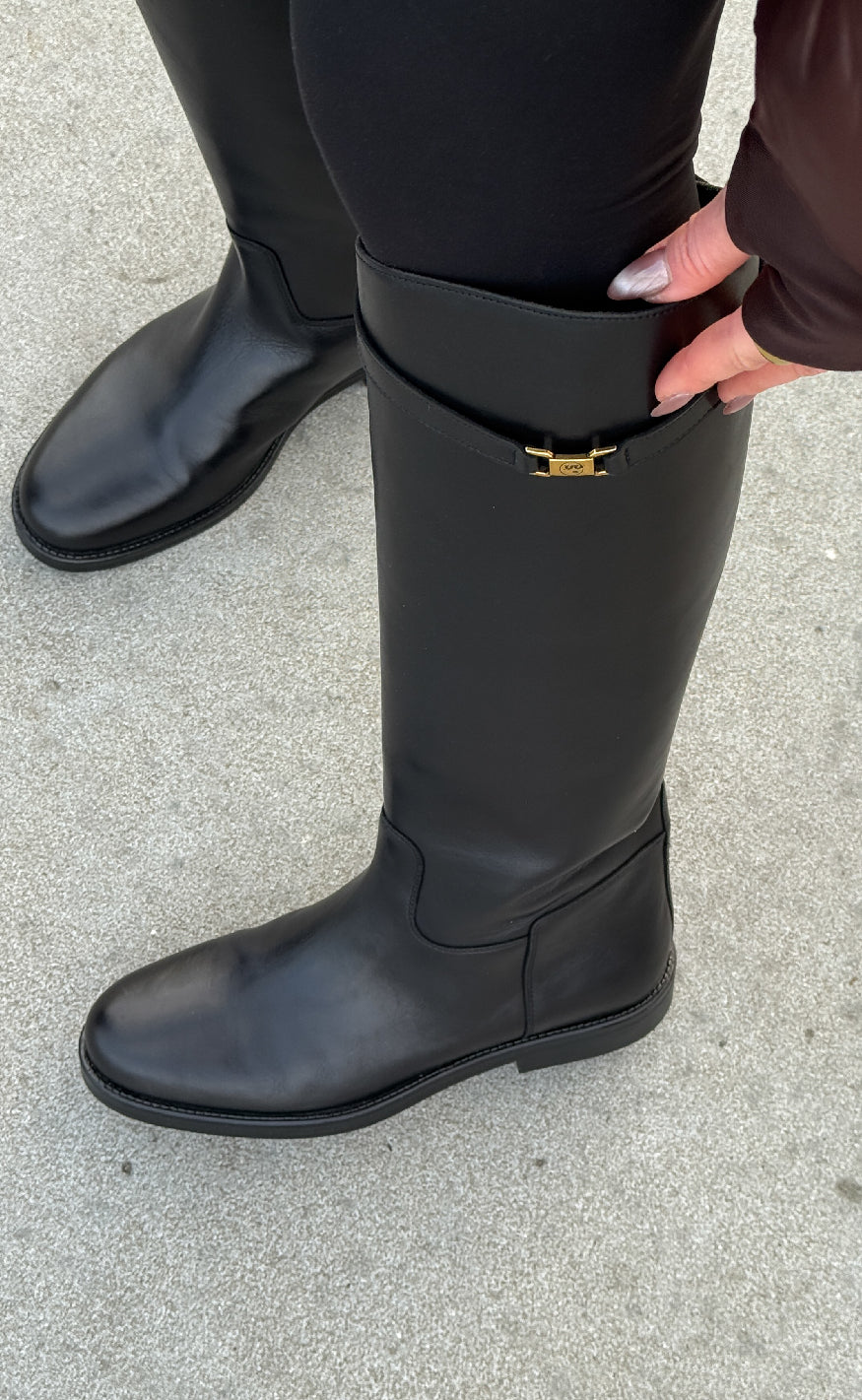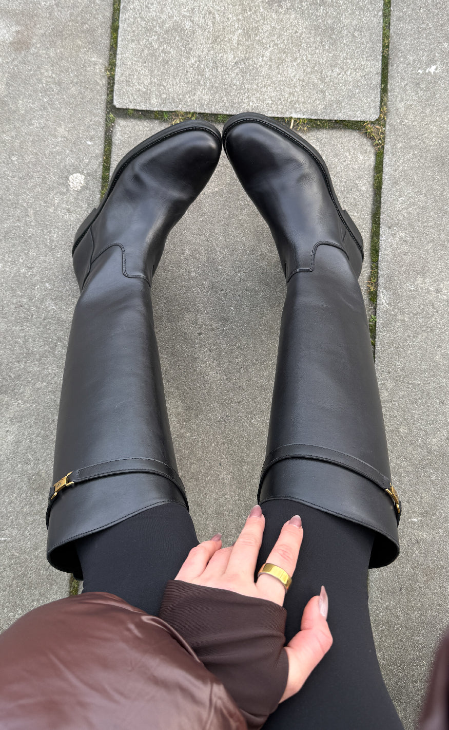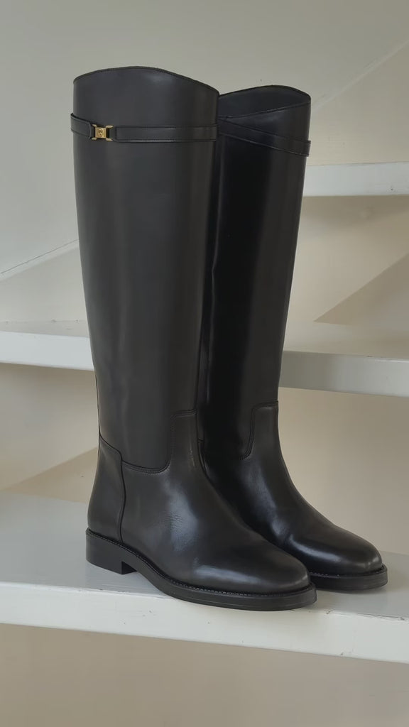 Sorte knæhøje støvler fra Phenumb i glat læder med et klassisk og elegant design.