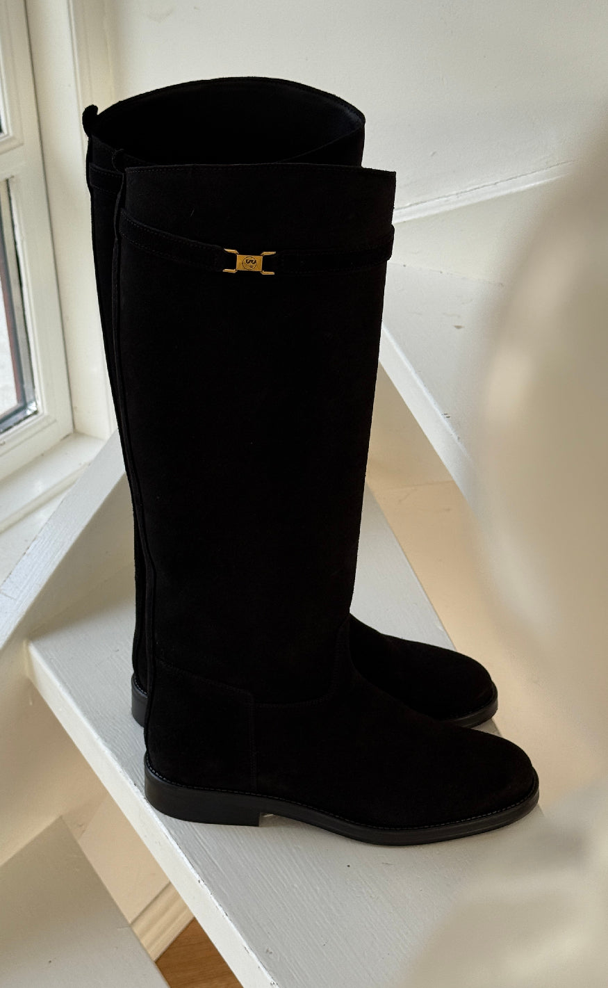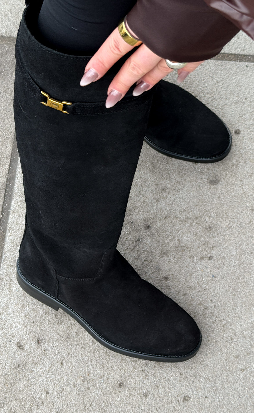 Sorte knæhøje støvler fra Phenumb i en ruskinds kvalitet med et klassisk og elegant design.