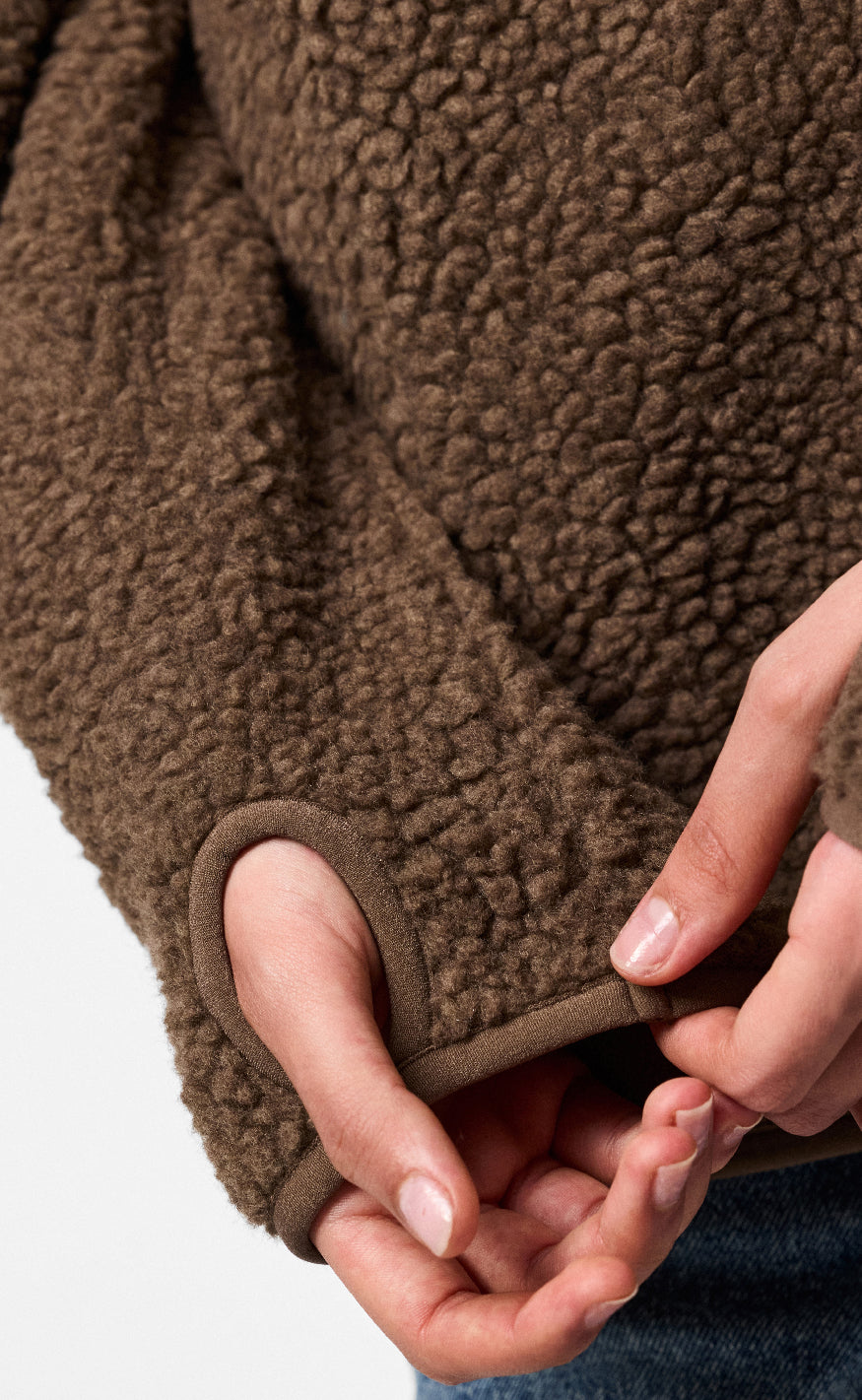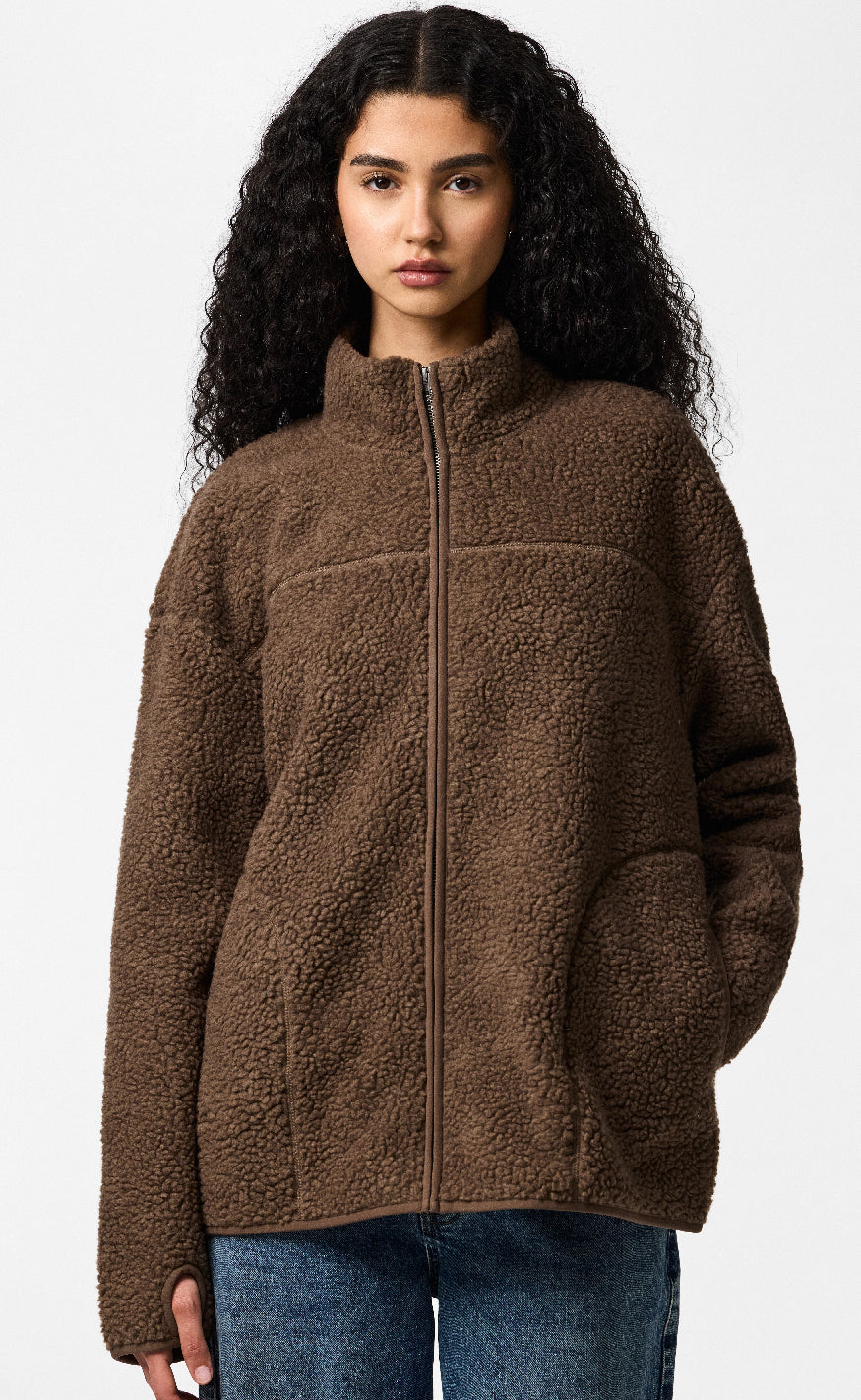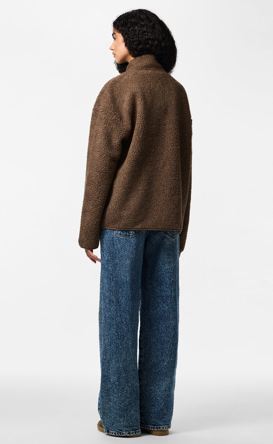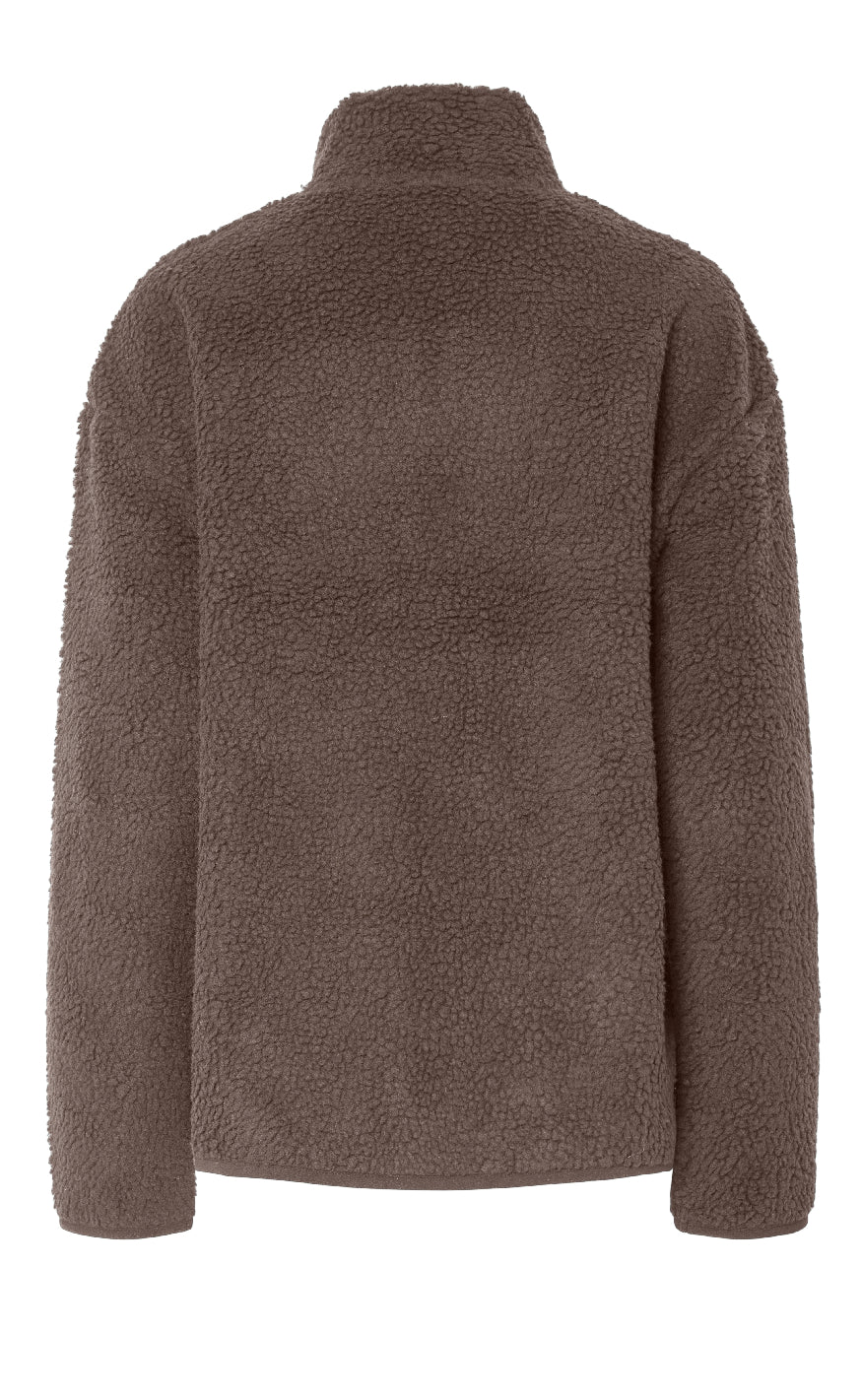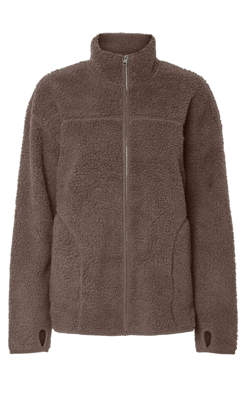 Brun teddyjakke fra Pieces i en blød og vamset kvalitet med høj hals.
