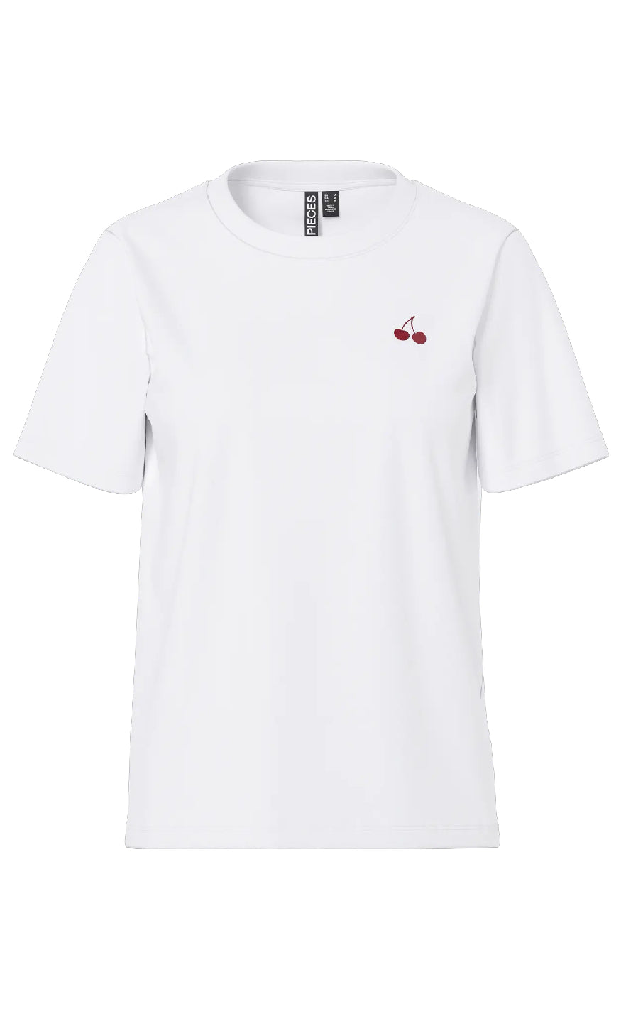 Flot og basic t-shirt fra Pieces i hvid, med et kirsebær icon ved brystet.