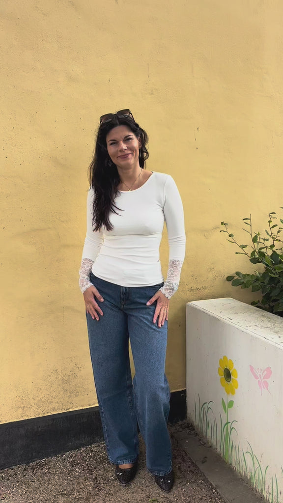 Blusen har lange ærmer med blonde ved håndleddet og er fremstillet i en virkelig blød og strækbar kvalitet, så den er dejlig at have på. Blusen kan både styles til et par jeans, men kan f.eks. også bruges under en blazer.