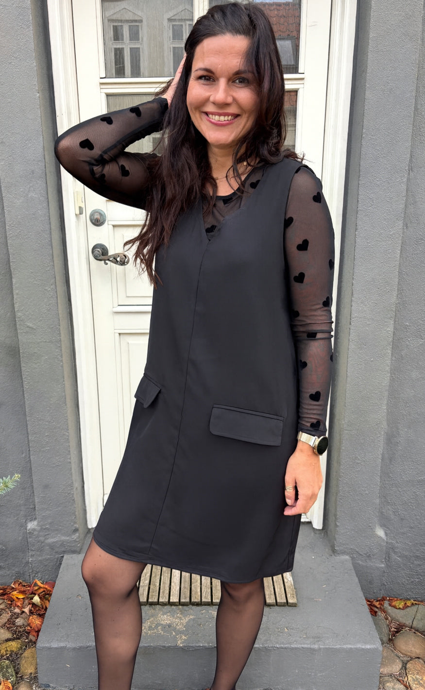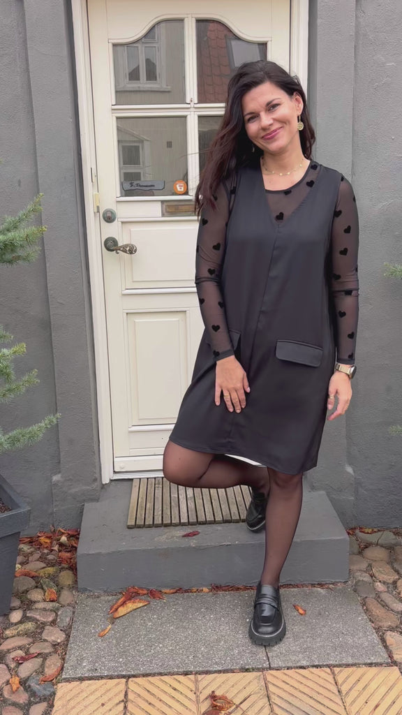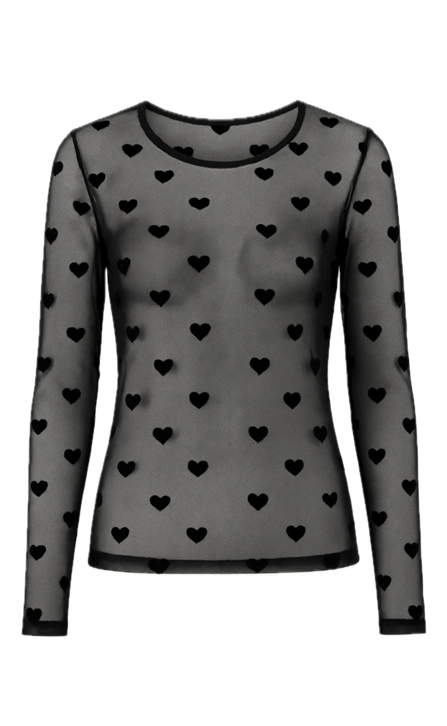 Smart mesh bluse fra Say INA Copenhagen i sort med hjerter.