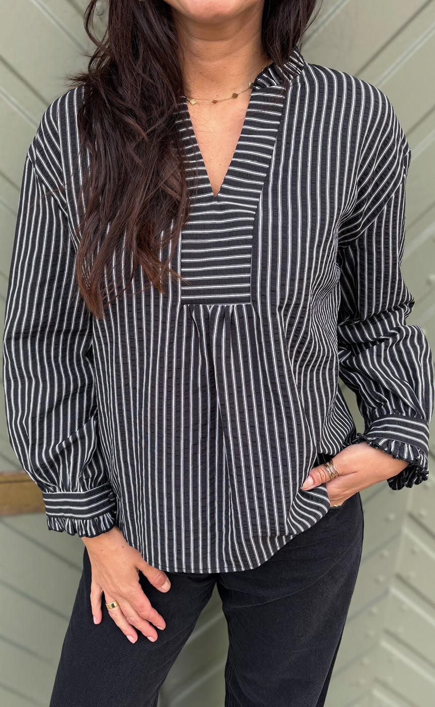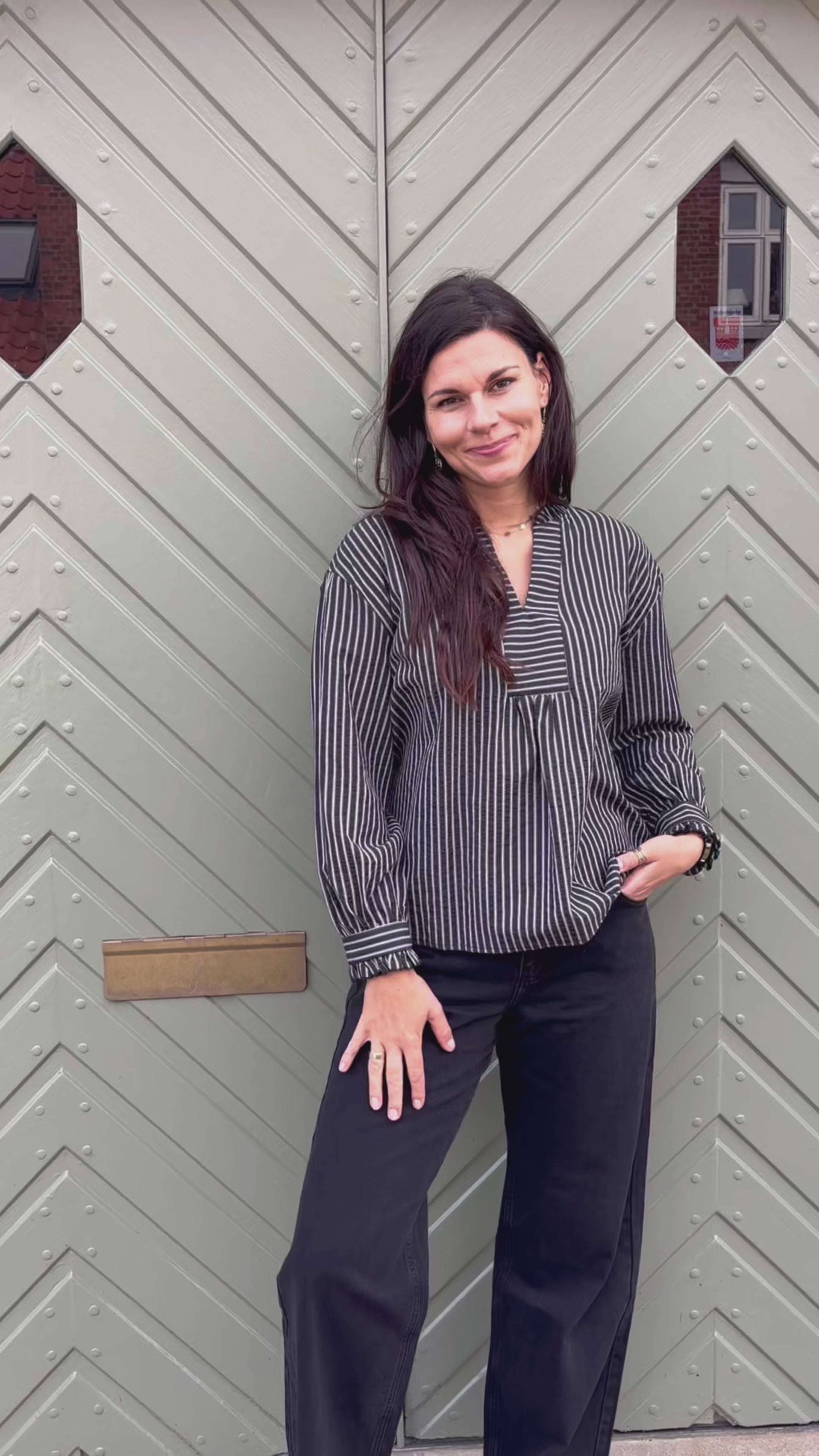 Flot bluse fra Say INA Copenhagen i sort med hvide striber.