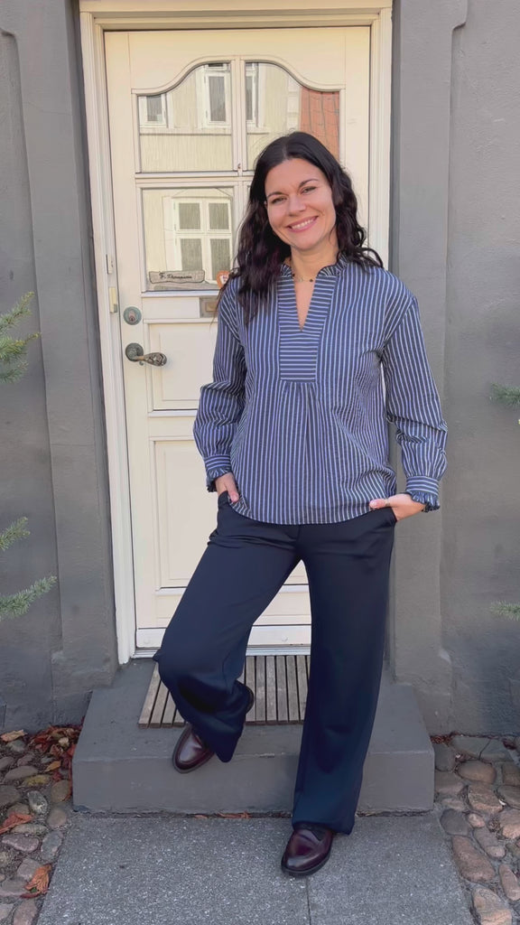 Flot bluse fra Say INA Copenhagen i navy blå med hvide striber.