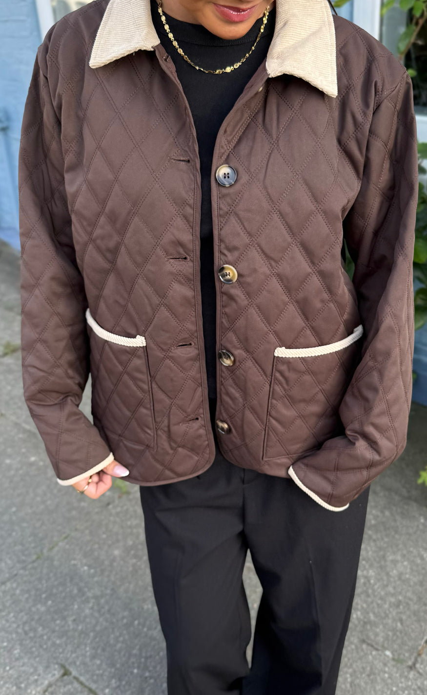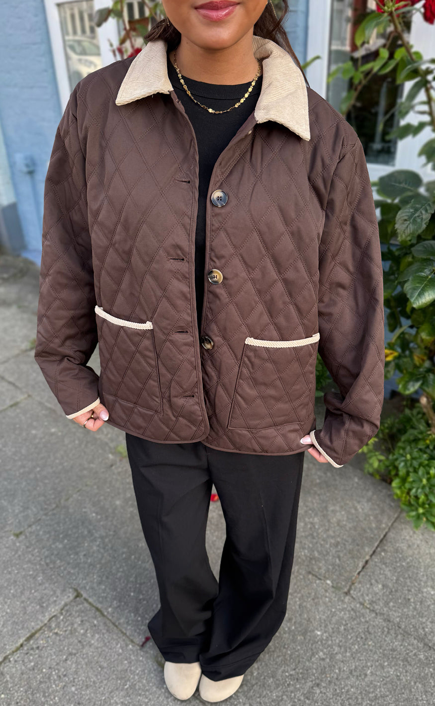 Say INA Copenhagen Jakke - Adele Quilt - Chocolate Brown W. Corduroy