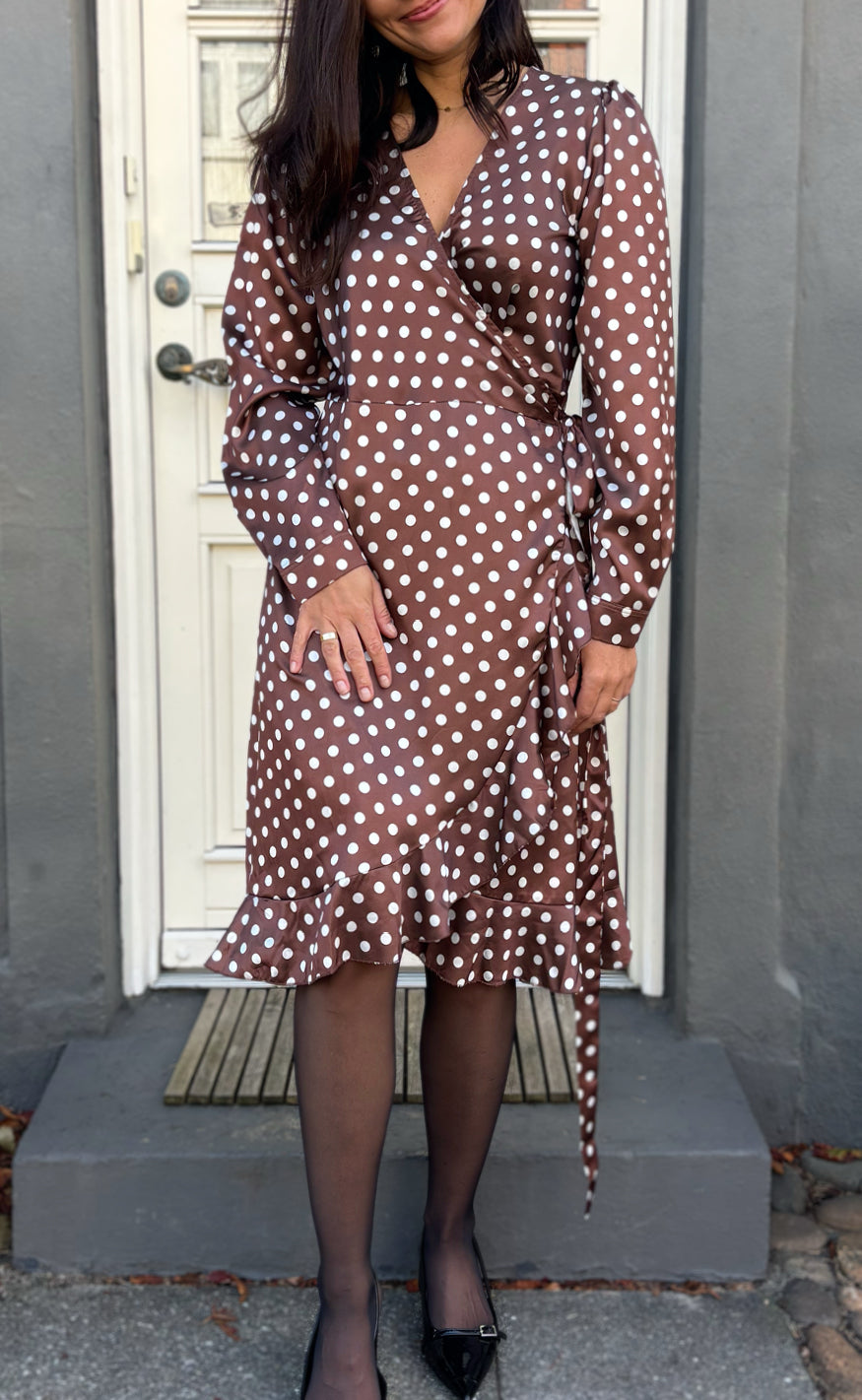 Say INA Copenhagen Kjole - Brina Wrap - Dark Brown W. White Dots