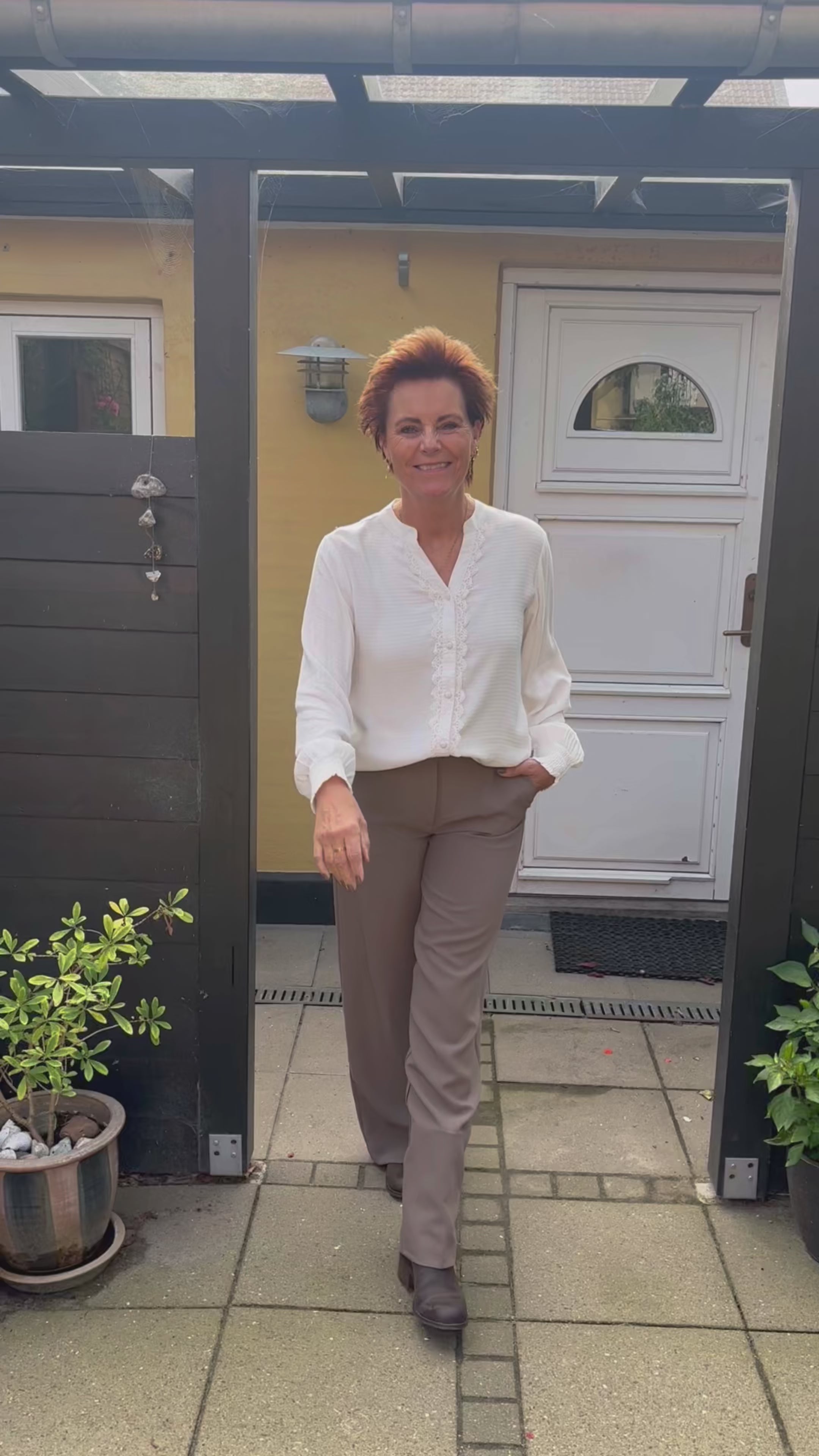 Smuk skjorte fra Say INA Copenhagen i off white med et fint mønster i stoffet og en blonde-kant langs knapperne.