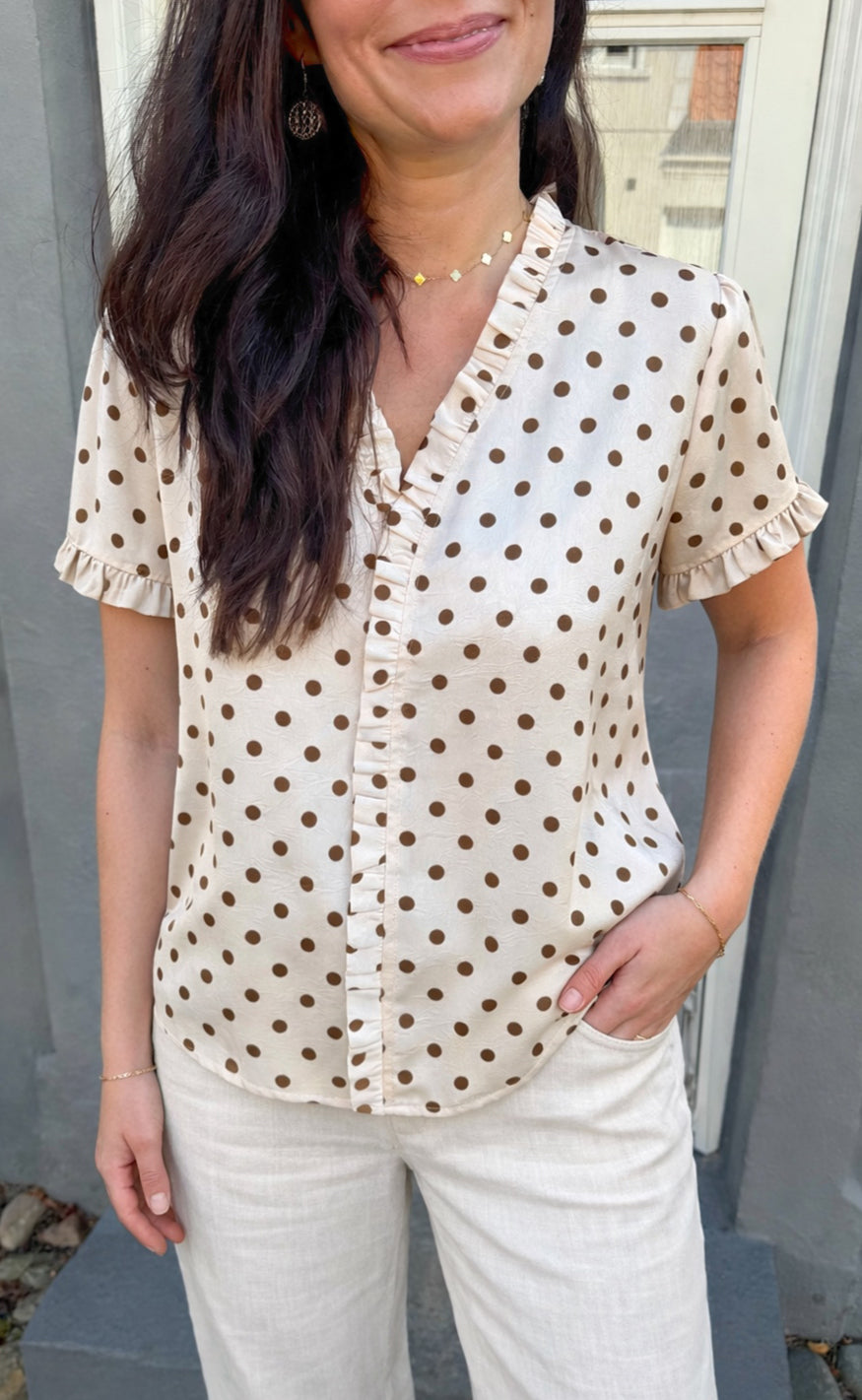 Say INA Copenhagen Top - Catja - Beige Dots