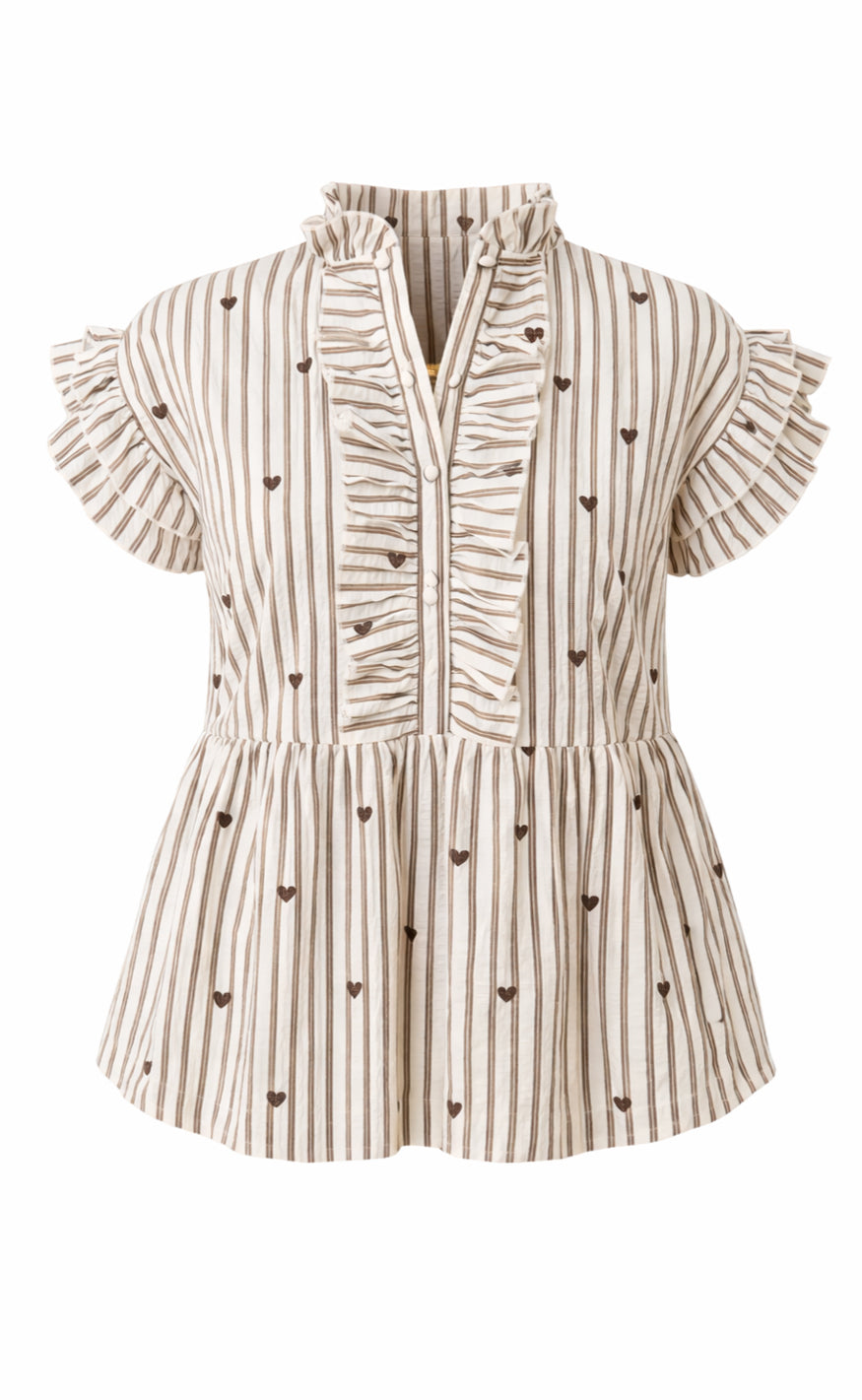 Say INA Copenhagen Top - Freya - White / Brown Striped W. Brown Hearts