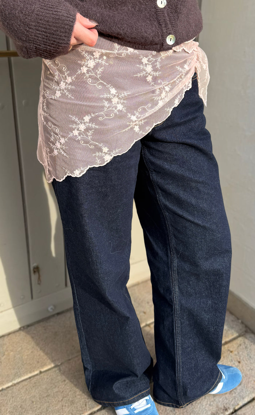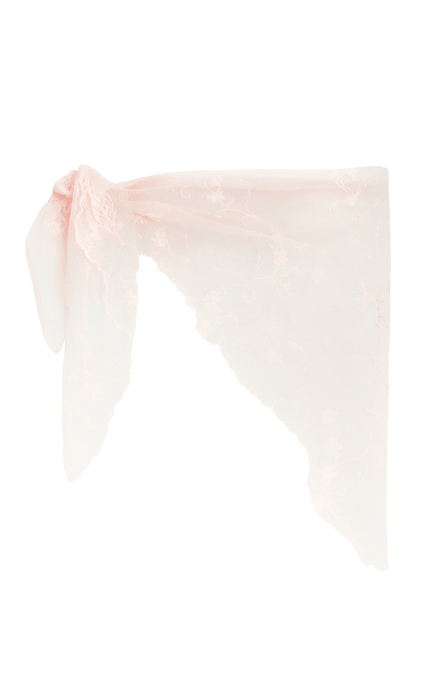 Smart trekantet blondetørklæde fra Say INA Copenhagen i lyserød. Tørklædet kan også kan bindes som en nederdel, der er et af sæsonens helt store trends!