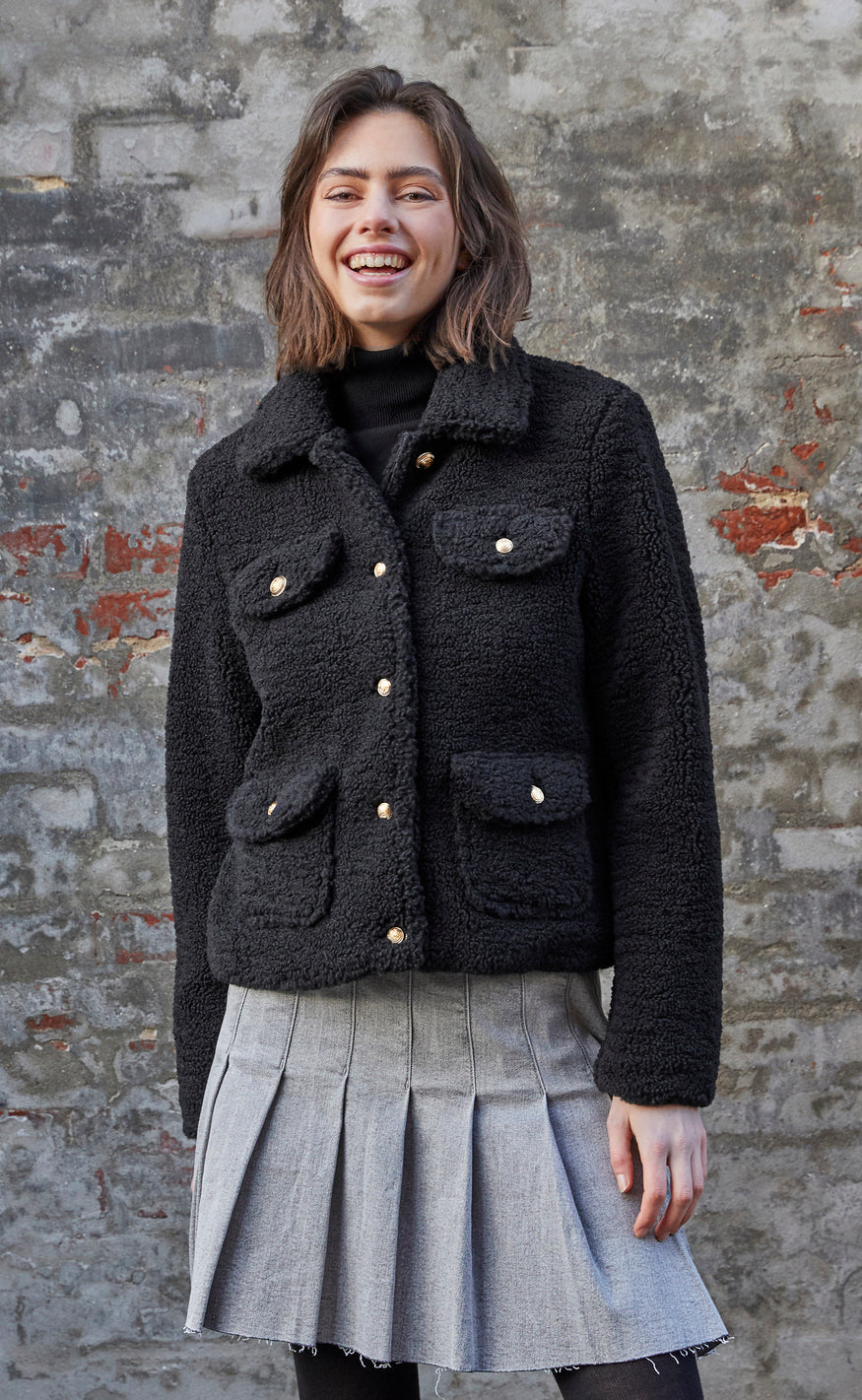 Blød teddyjakke fra Sisters Point i en klassisk sort farve.