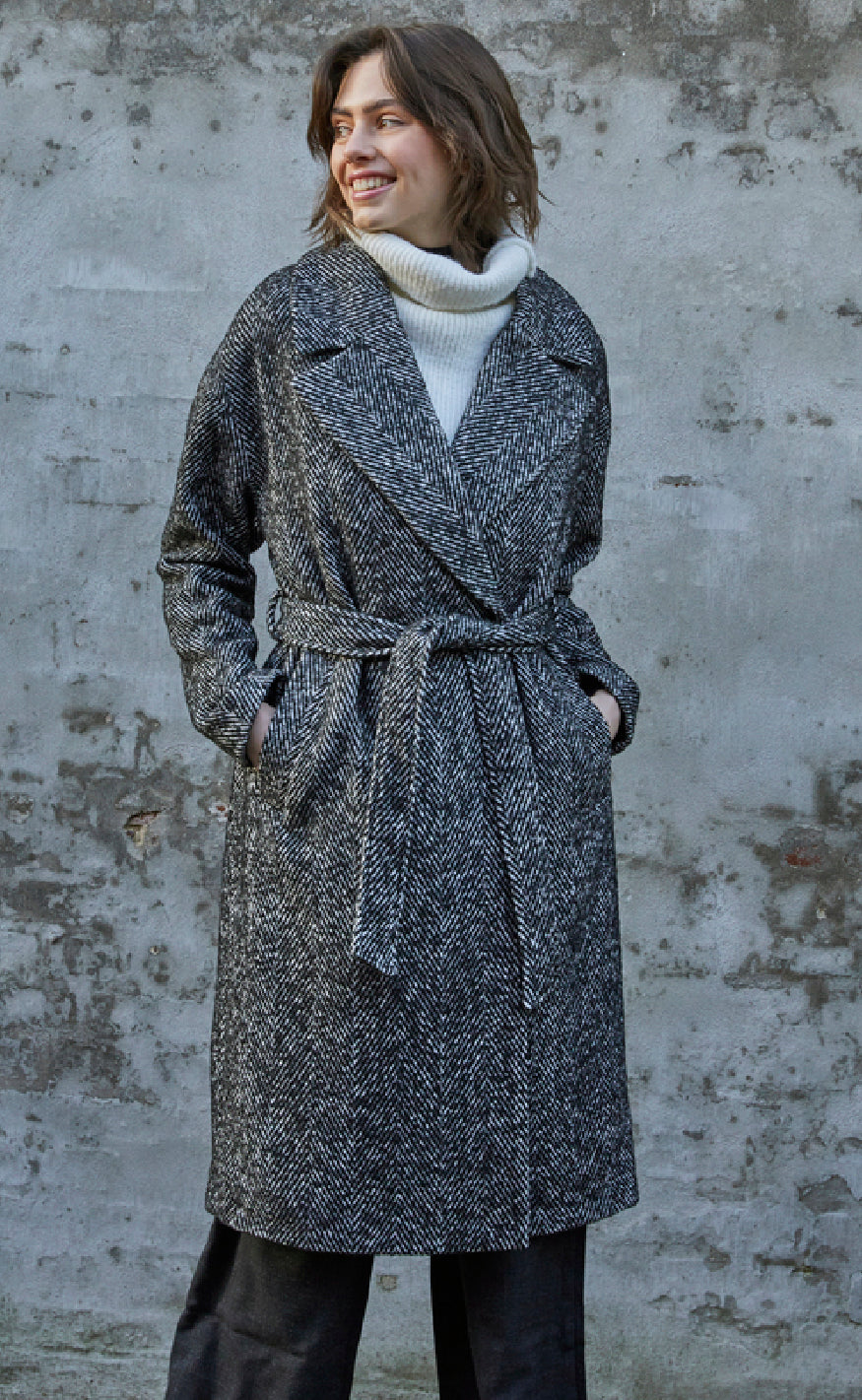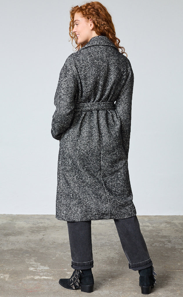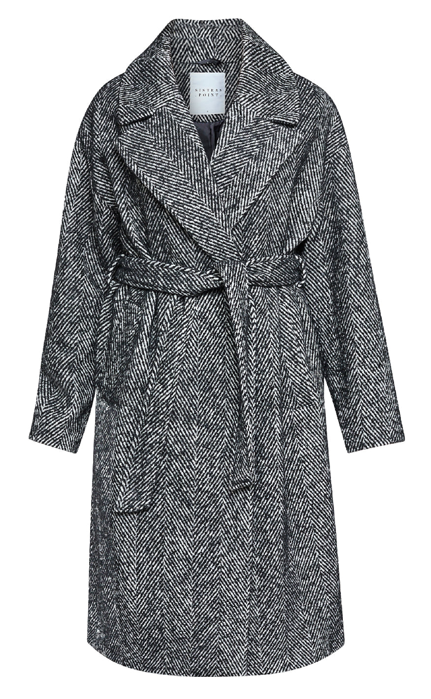 Frakke fra Sisters Point i et sort-hvidt mønster med klassisk sildebensstruktur.