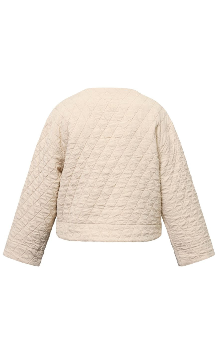 Let og moderne jakke fra Sisters Point i en smuk, lys nuance med quiltet struktur. Jakken har rund hals, gennemgående knaplukning og store frontlommer, der giver et afslappet og stilrent udtryk.