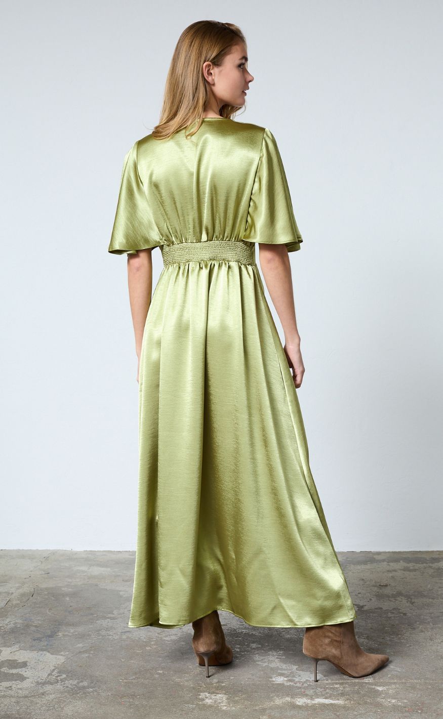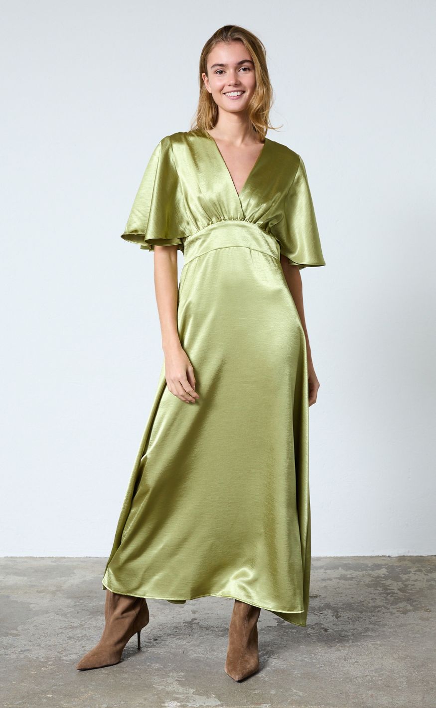 Flot og feminin kjole fra Sisters Point i en grøn satin kvalitet.