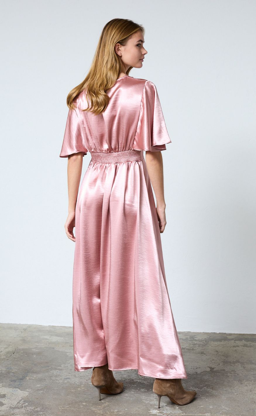 Flot og feminin kjole fra Sisters Point i en lyserød satin kvalitet.