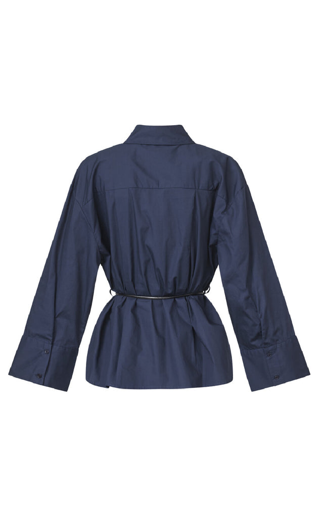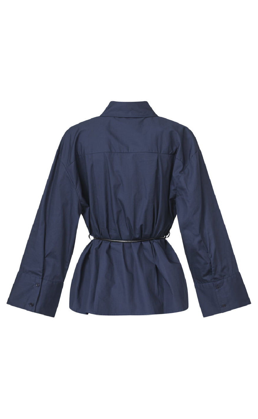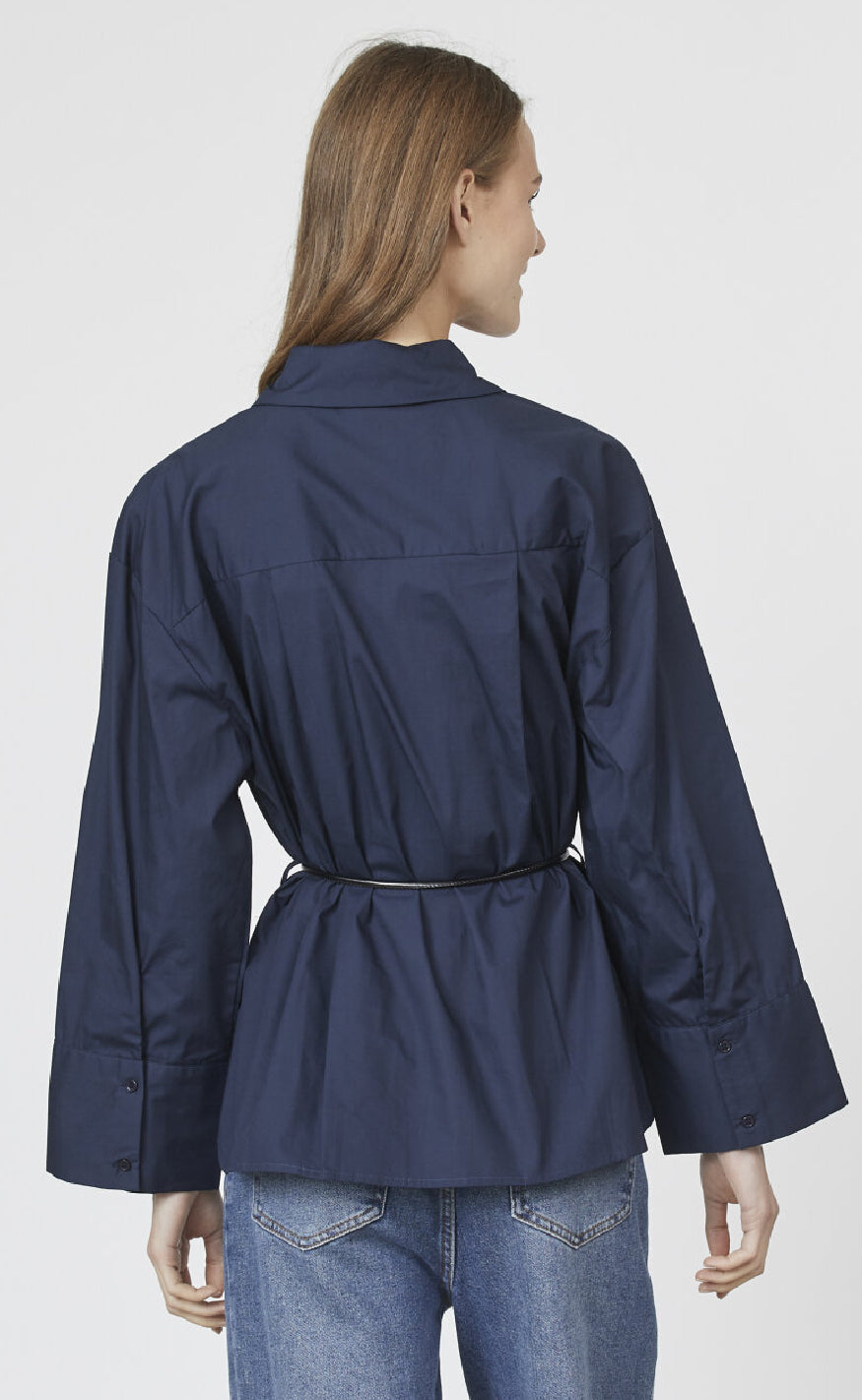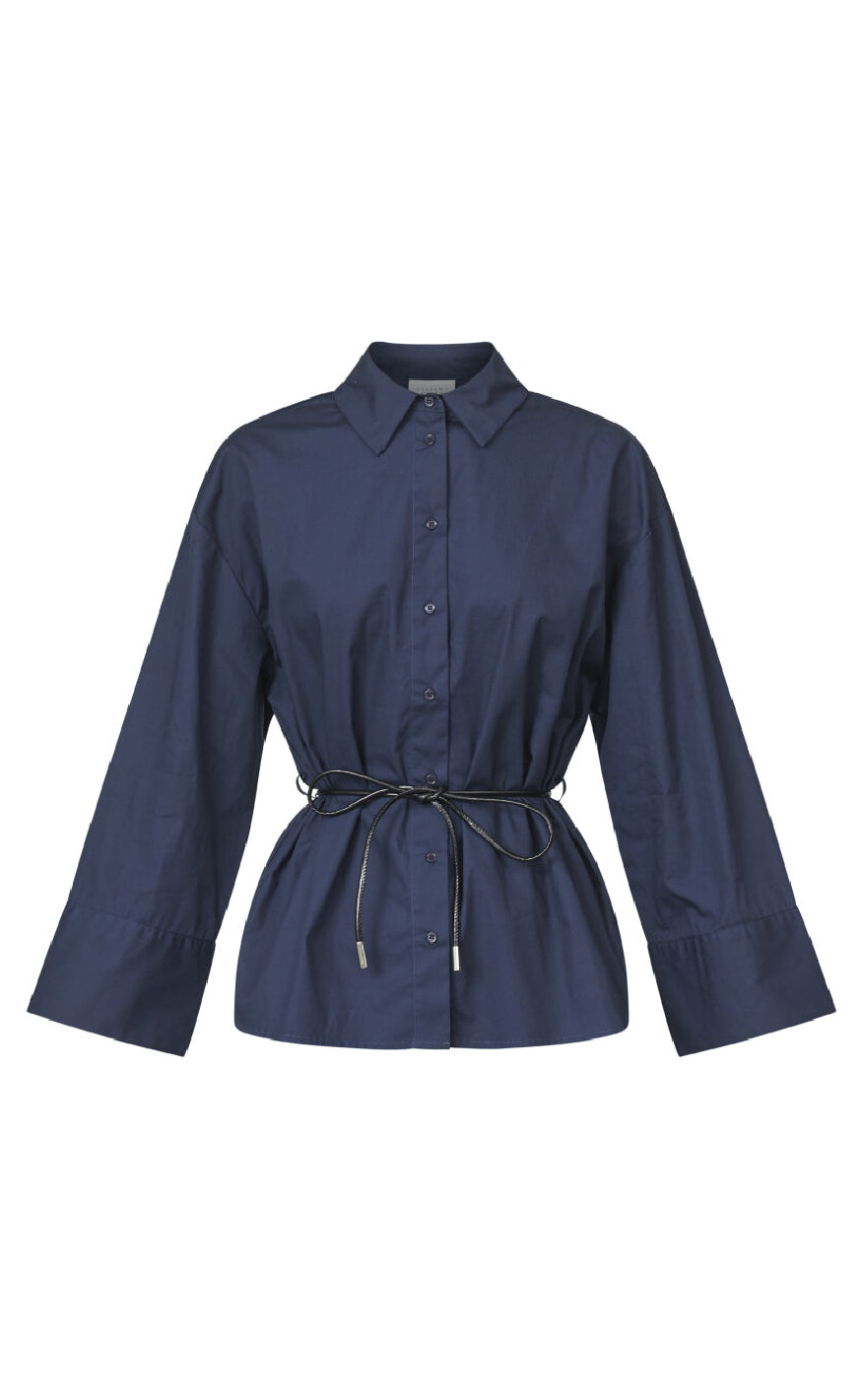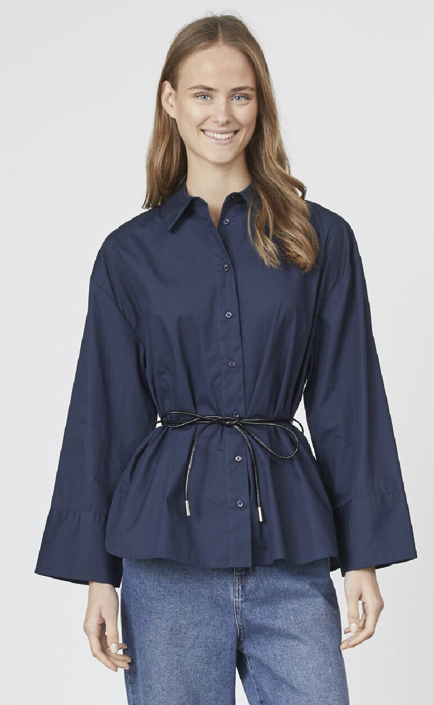 Flot skjorte fra Sisters Point i navy, med et læderbånd ved taljen.