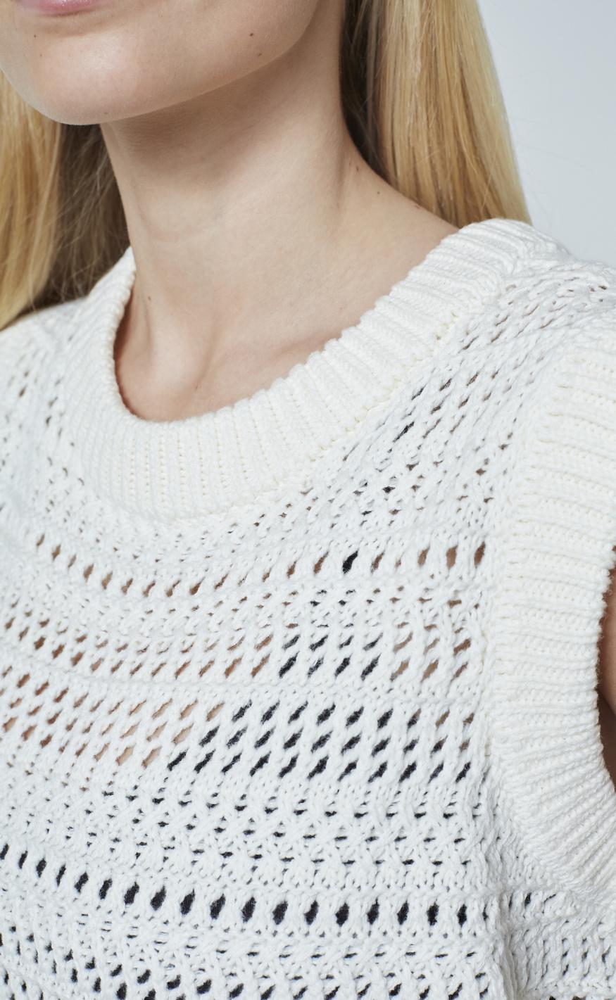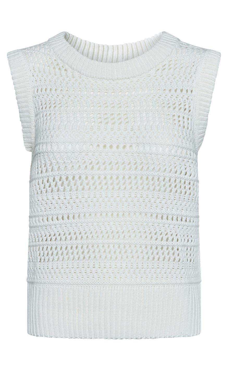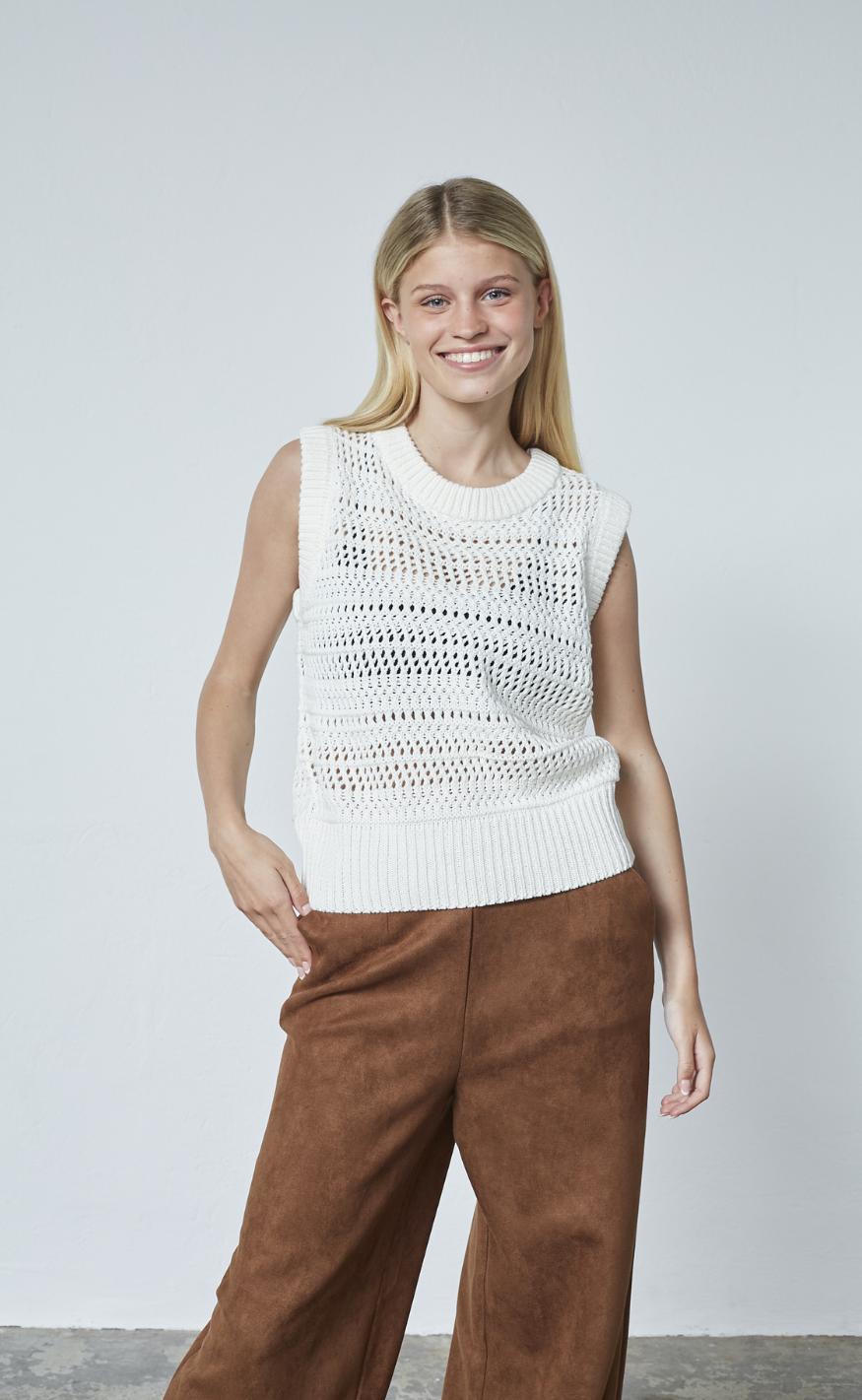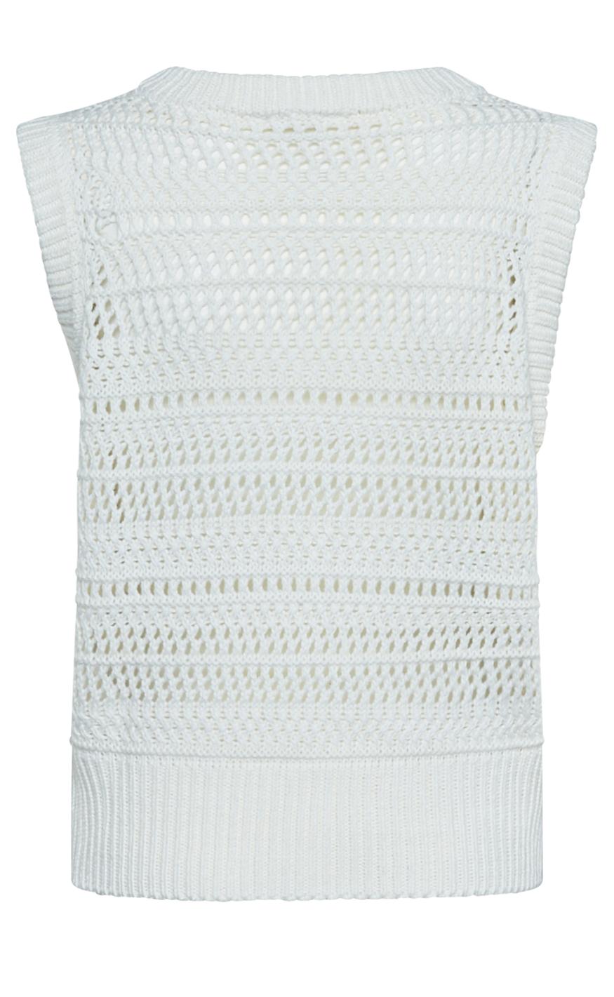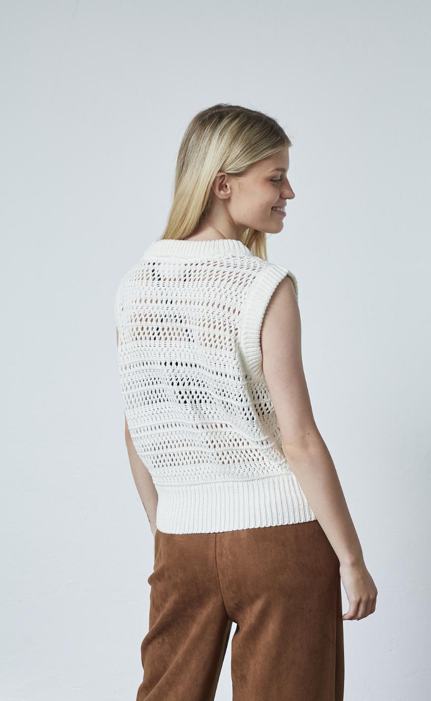 Vesten er lavet i et sort strik, og er derfor gennemsigtet. Super god til lag på lag outfits!