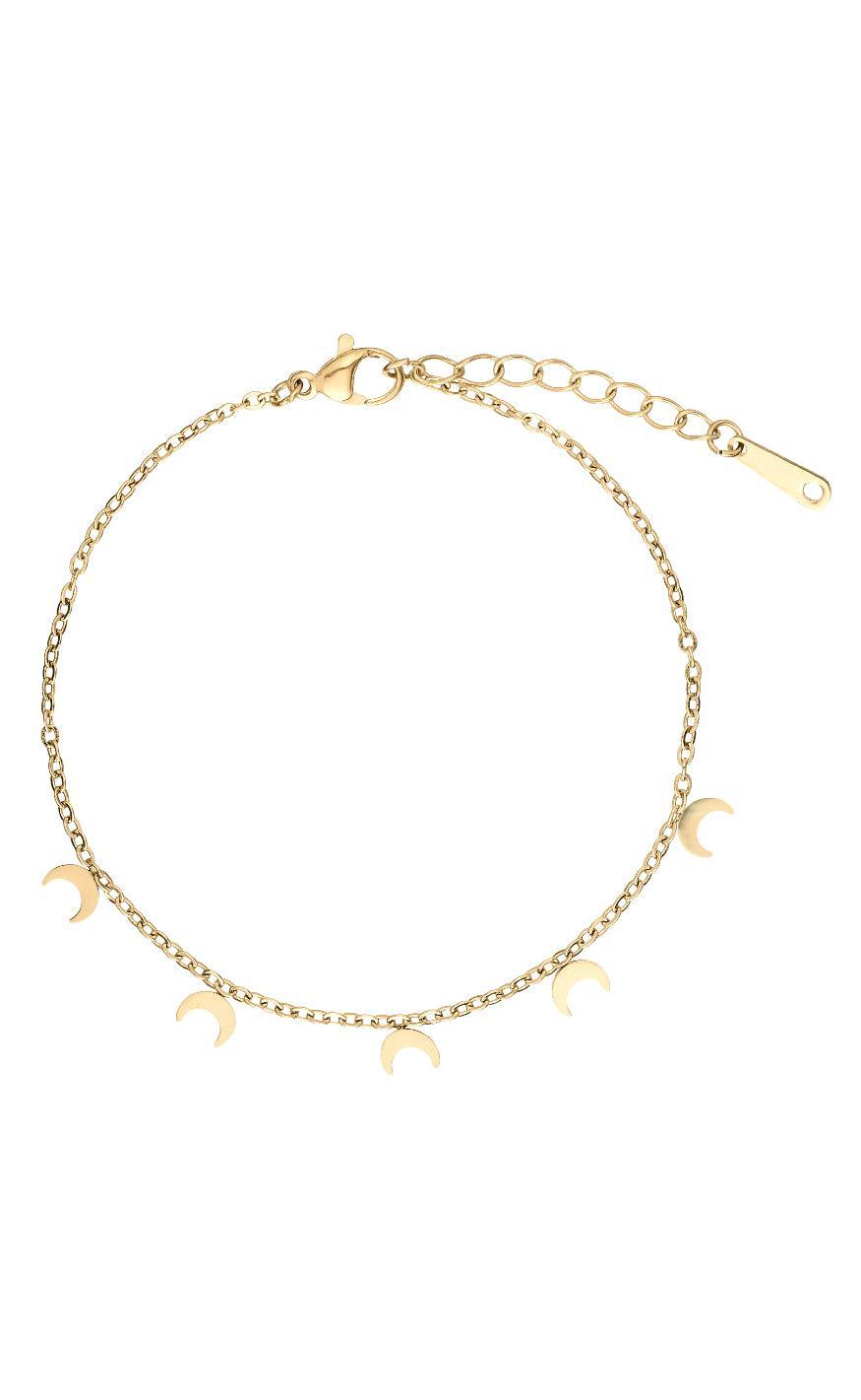 Armbånd fra Smykkeli Copenhagen i guld med 5 vedhæng formet som måner. Armbåndet har et enkelt og stilrent look, der pifter ethvert outfit op.