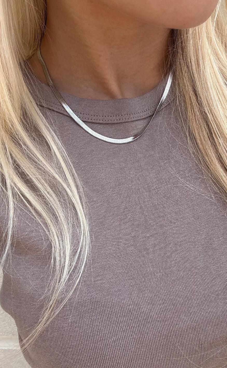 Smuk halskæde fra Smykkeli Copenhagen i sølv med en flad overflade. Halskæden har et stilrent look, der pifter ethvert outfit op.